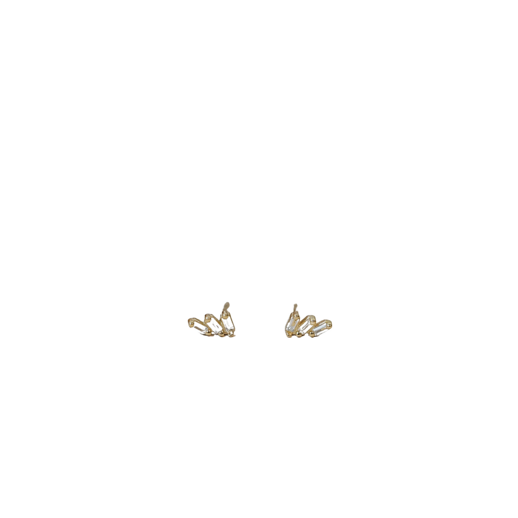 Three dainty baguette set stones slope delicately down off one another, giving off a major art deco mood. Show this pair off with your sleek chignon, or in your post-workout bun.