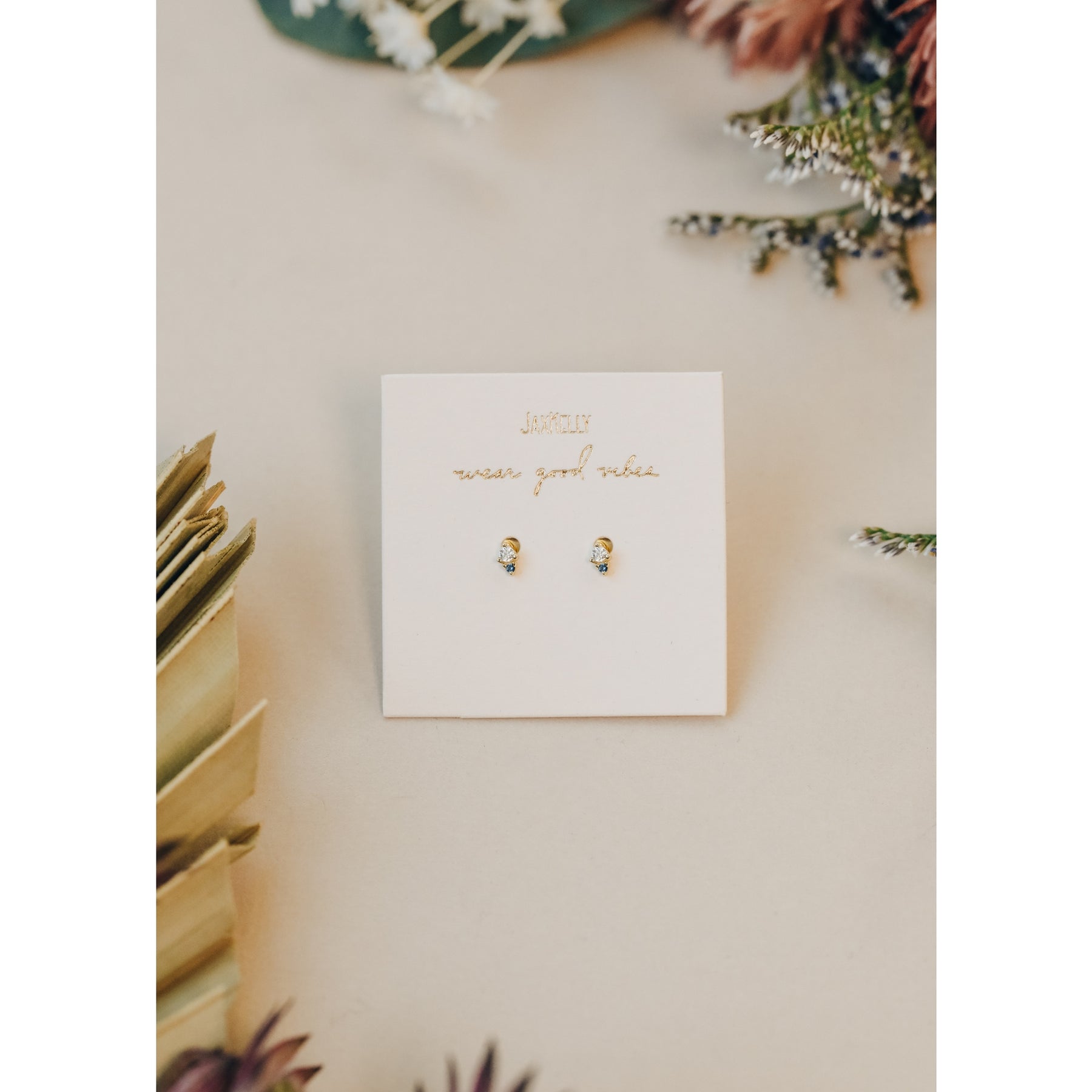 paired the daintiest stone of sapphire CZ for the tiniest hint of sparkle, and a dot of sparkling white.