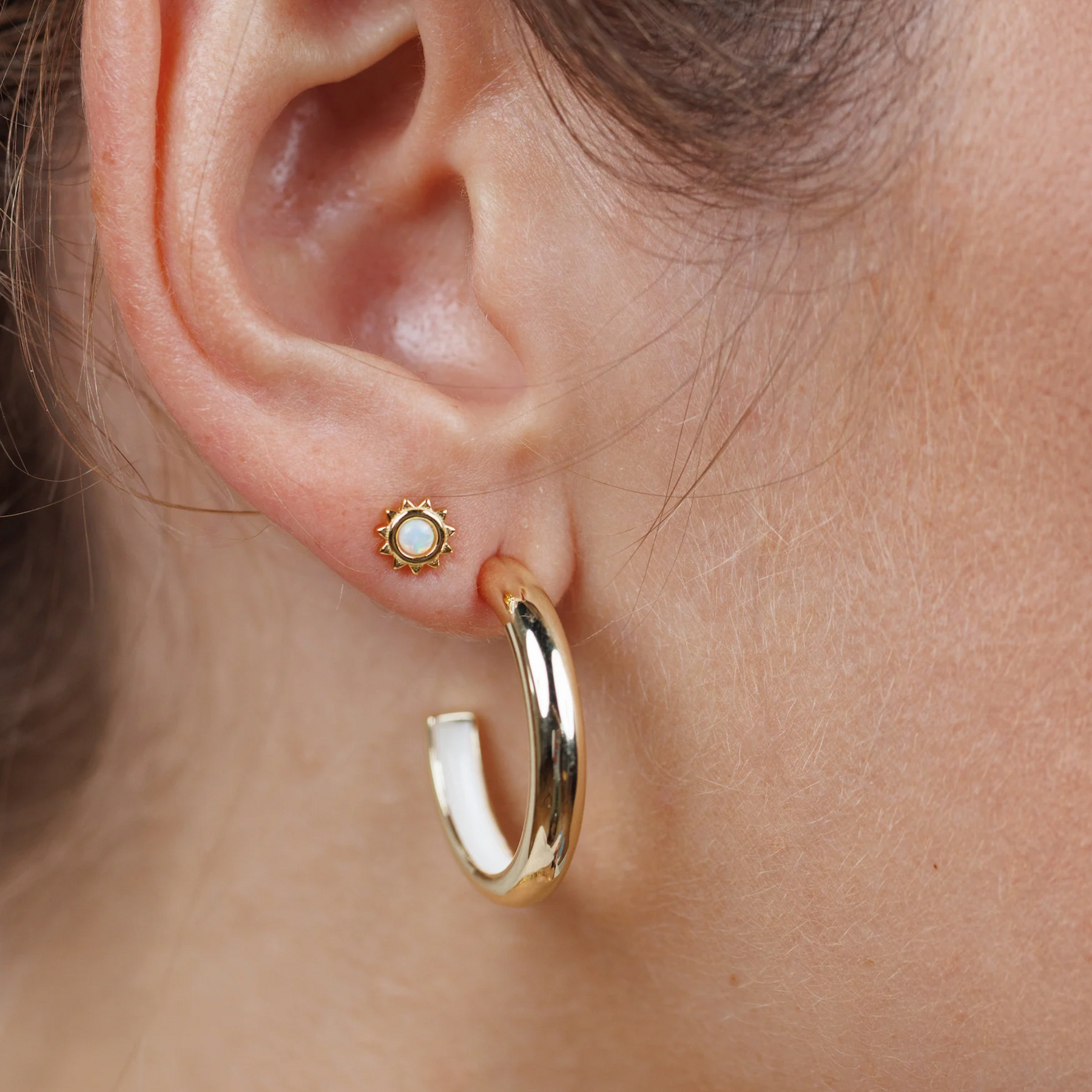 A fresh twist on a classic hoop—these gold beauties feature a pop of hand-painted white enamel on the inner rim for a playful peek of color with every turn.