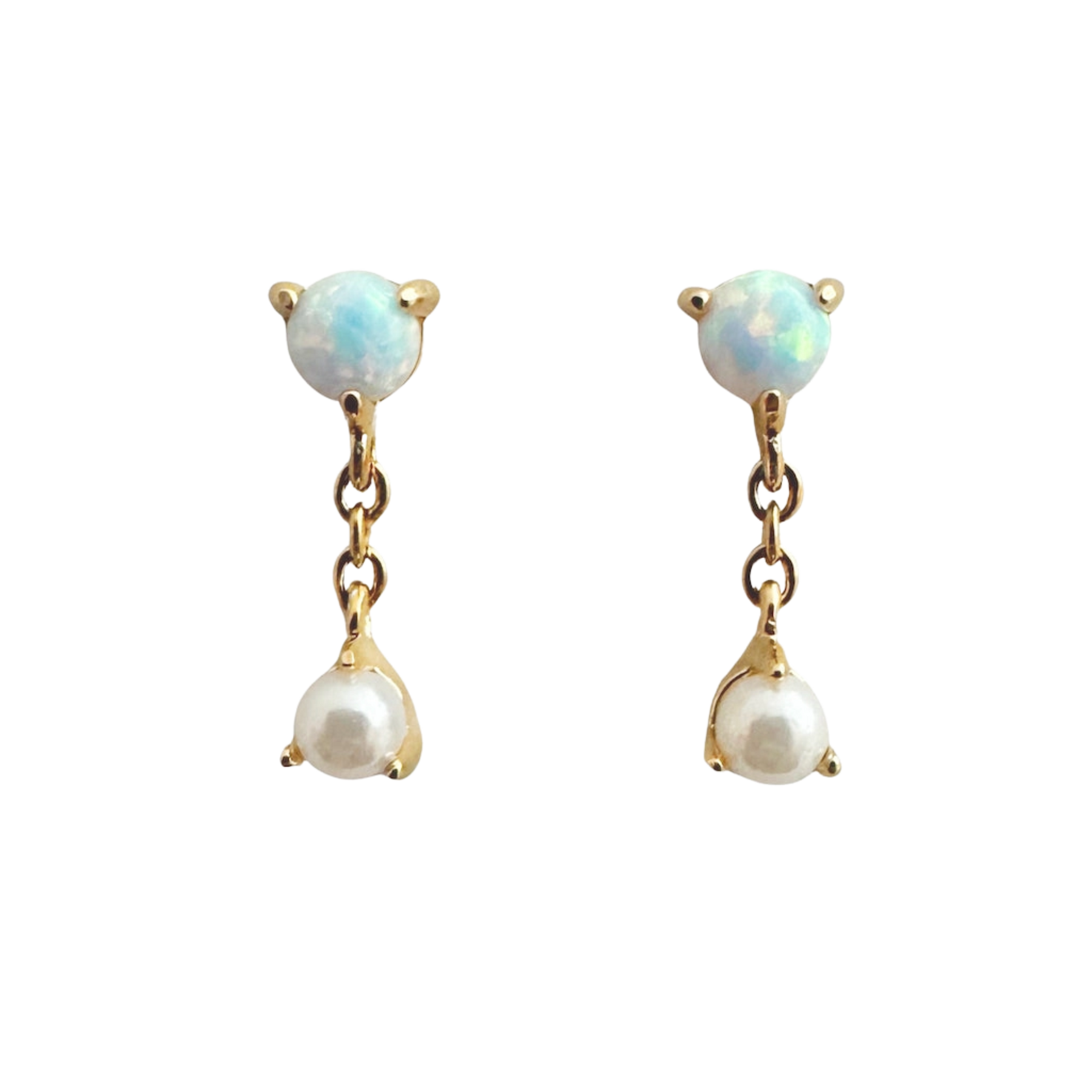 Delightfully dainty, these droplet chain studs feature a luminous pearl and glimmering moonstone linked together in cosmic harmony. Like our Earth and Moon, this intergalactic pairing adds just the right amount of celestial sparkle to your everyday style.