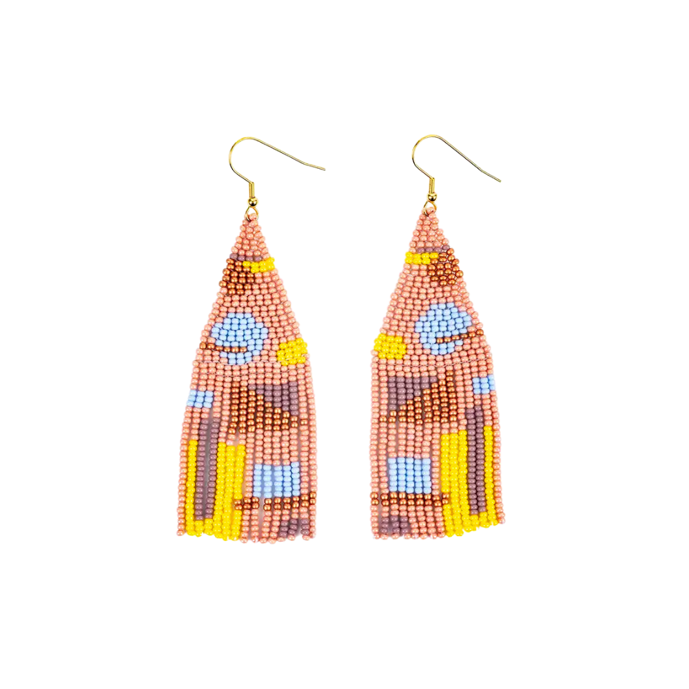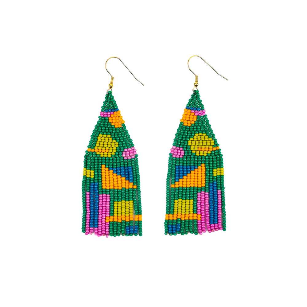 The Shapes Fringe Earrings are handmade in a fair trade workshop in Guatemala.