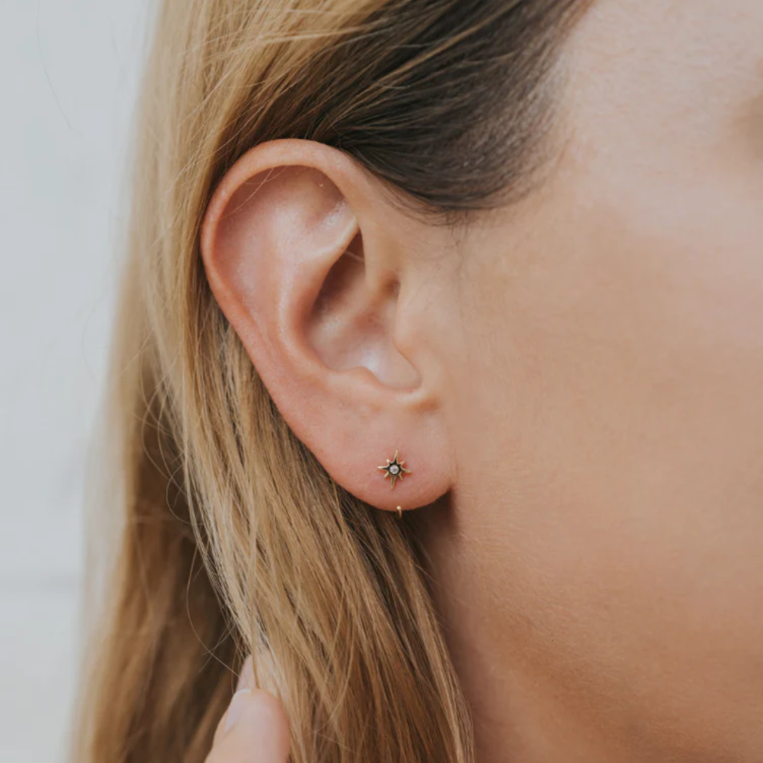 Add a touch of stardust to your jewelry collection with these Icon Star Huggies—a dainty yet eye-catching pair designed for effortless, everyday elegance. Featuring a petite, star-cut CZ stone, these hoops offer just the right amount of sparkle and charm while their snug, huggie fit makes them perfect for layering or wearing solo.
