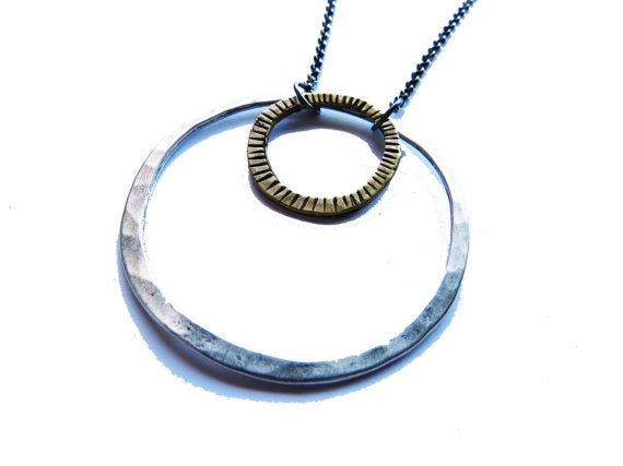 Mixed Brass and Sterling Circles Necklace