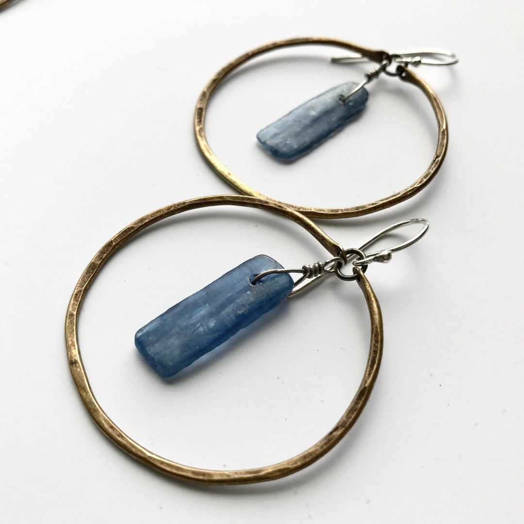 Brass Kyanite Circles Earrings - Small