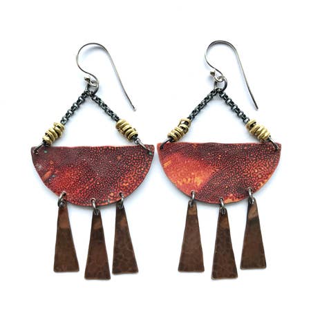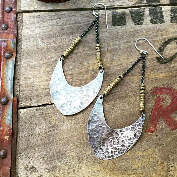 Mezzaluna Earrings - Brass Hoop w/ Thin, Stamped Silver Blade