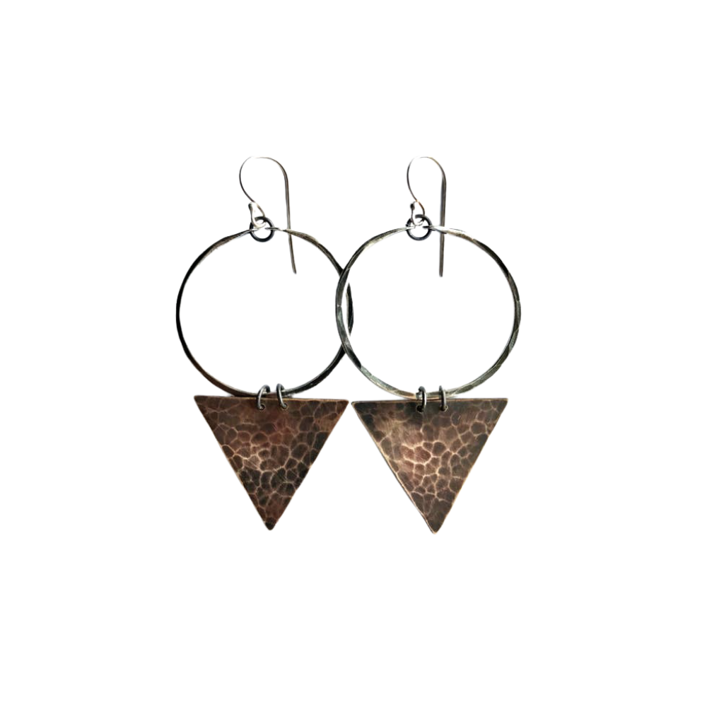Brass Diamond Shape Hoop Earrings with Silver Heishi - Small