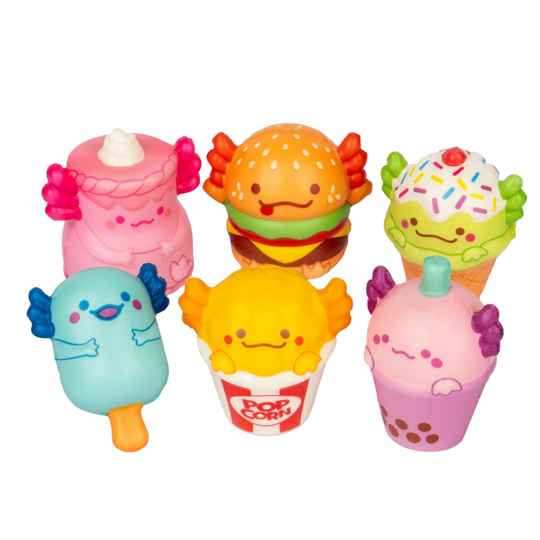 Satisfy your squishy cravings with these irresistibly cute axolotl snack pals! Each Snaxolotl comes in one of 6 collectible snack styles, complete with the sweetest little faces. Perfect for squishing, displaying, trading, or just adding a little joy to your day.