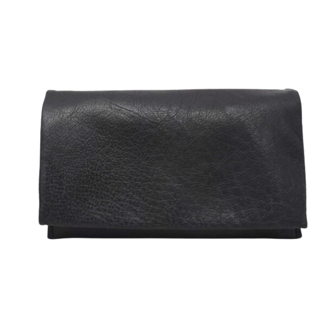 Eloise- Mimi simple wallet clutch 100% Leather, Front full flap secured by a magnetic snap closure, Interior organization with 1 zippered pocket, 2 open compartments, and 8 credit card slots, Colorful fabric lined interior.