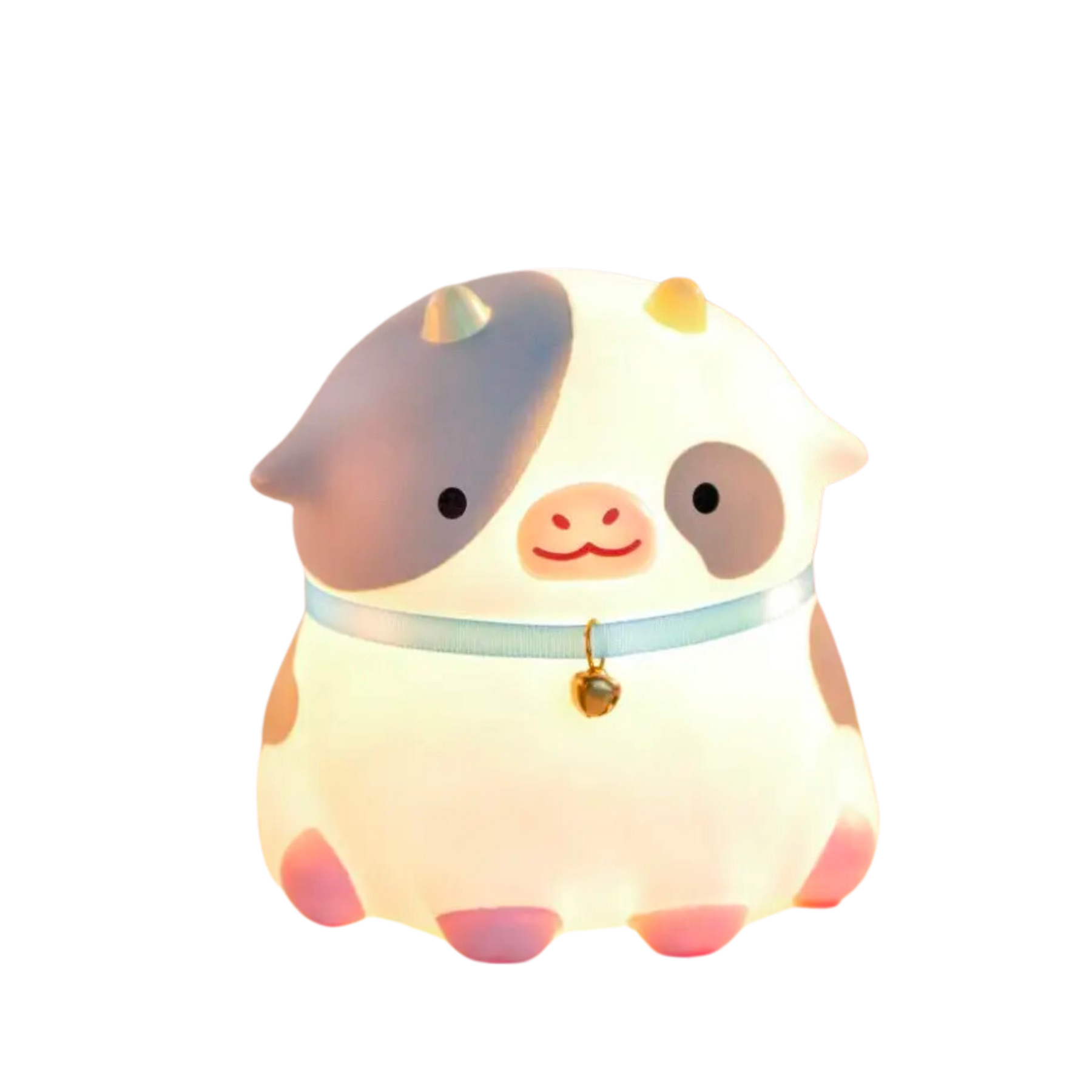 Each cow light comes with a USB-C cord, ribbon and bell.