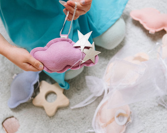 The cloud comes in an organza bag with a care tag and is ready to be gifted or hung.