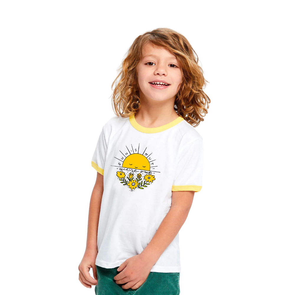 USA MADE Youth Ringer Tee - white with yellow neck/sleeve bands