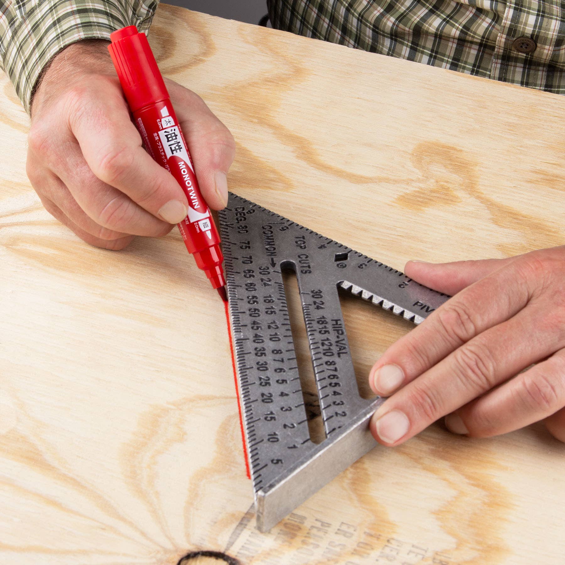 Permanent red marker with two durable tips – wide chisel tip and fine bullet tip. Works on a wide range of materials, including paper, metal, plastic, glass, vinyl, porcelain, leather, and wood. Two tips provide options for making thin or thick marks of smear-proof oil-based permanent ink. Durable tips made of polyester fiber (chisel tip) and acrylic fiber (fine tip) stay fresh and firm even after heavy use. Great for marking on shipping labels, boxes, pallets, signs, and more. Anti-roll chisel tip cap prevents marker from rolling off work surface. Water resistant red ink. 6mm chisel tip; 2mm fine tip.