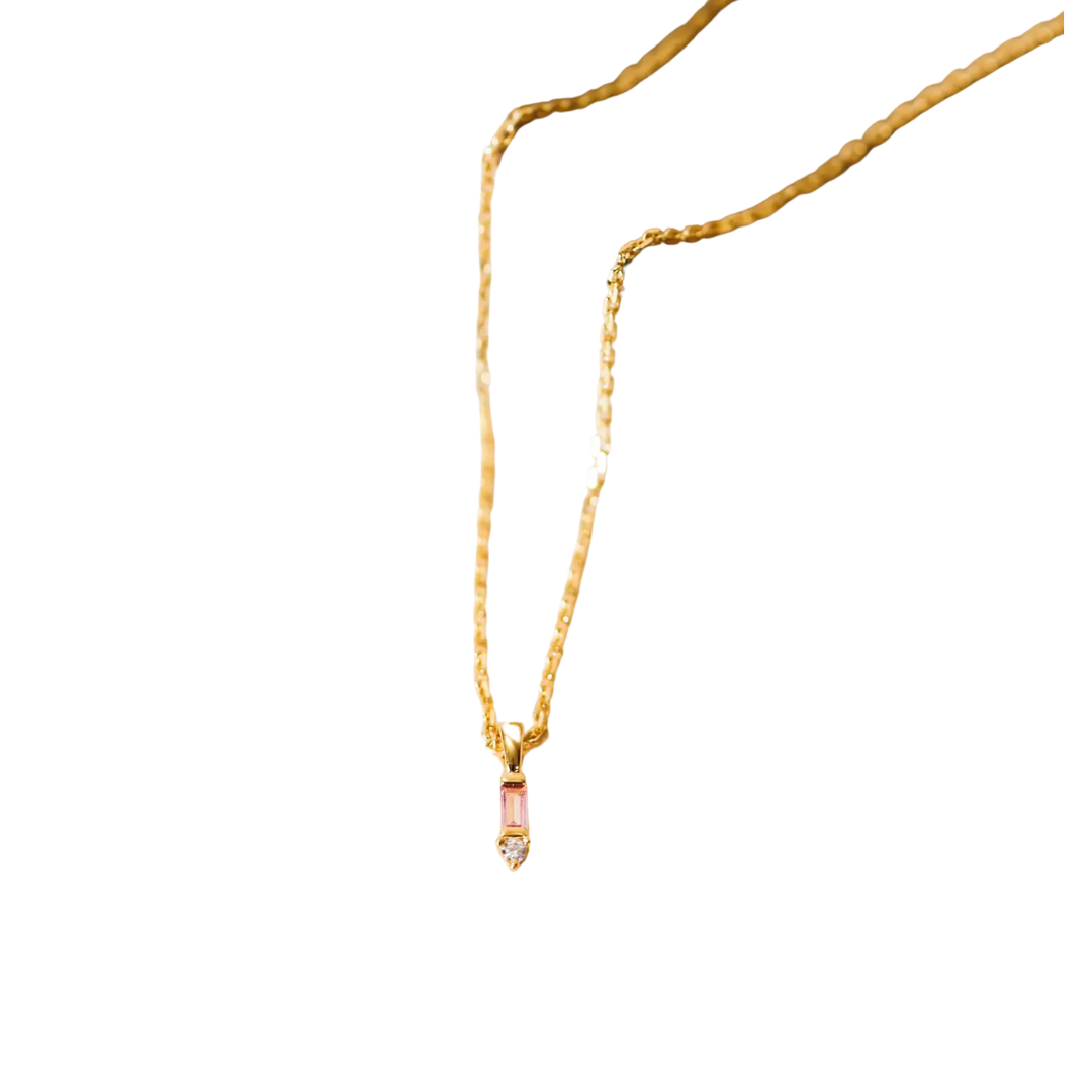 Baguette Drop Pendant Necklace - Pink