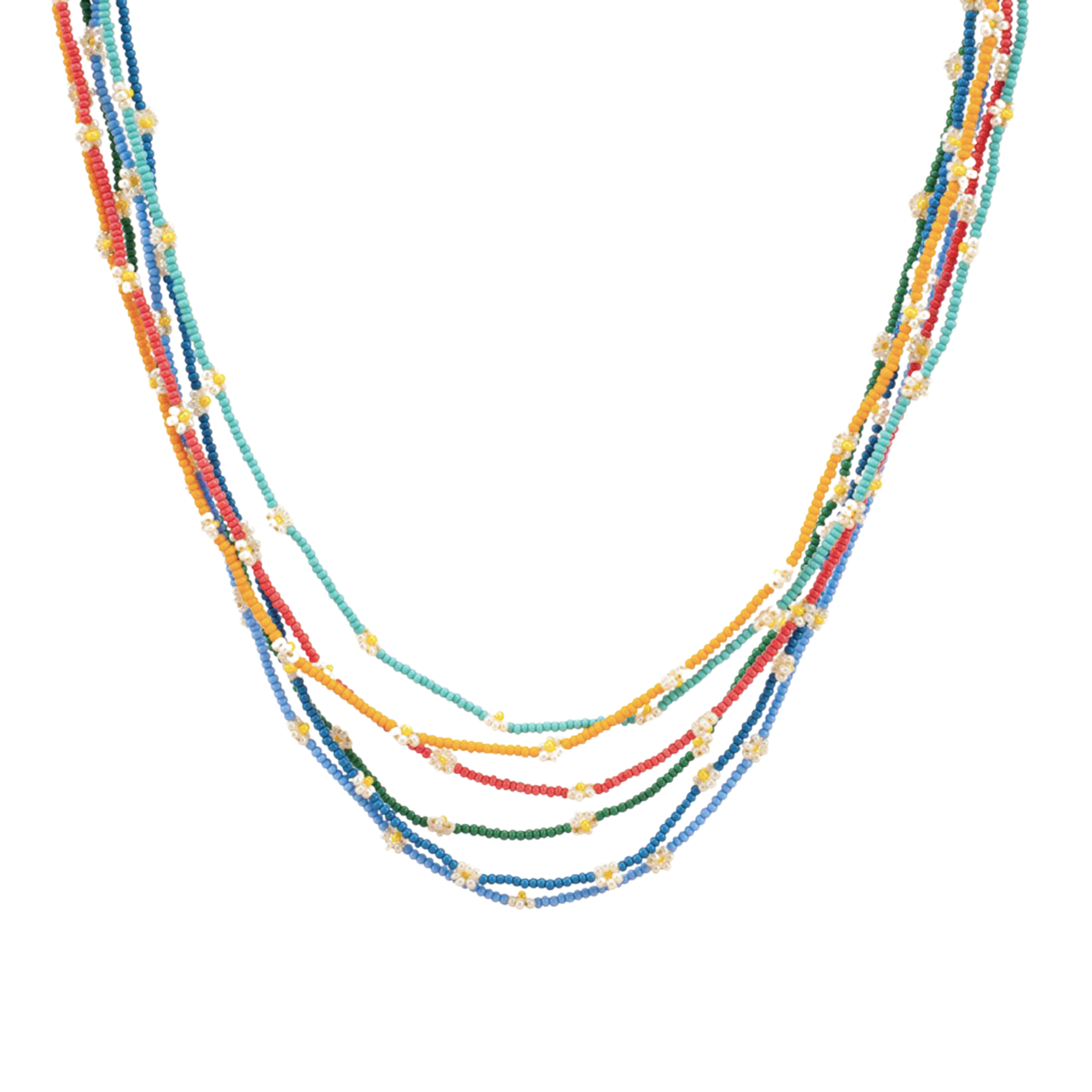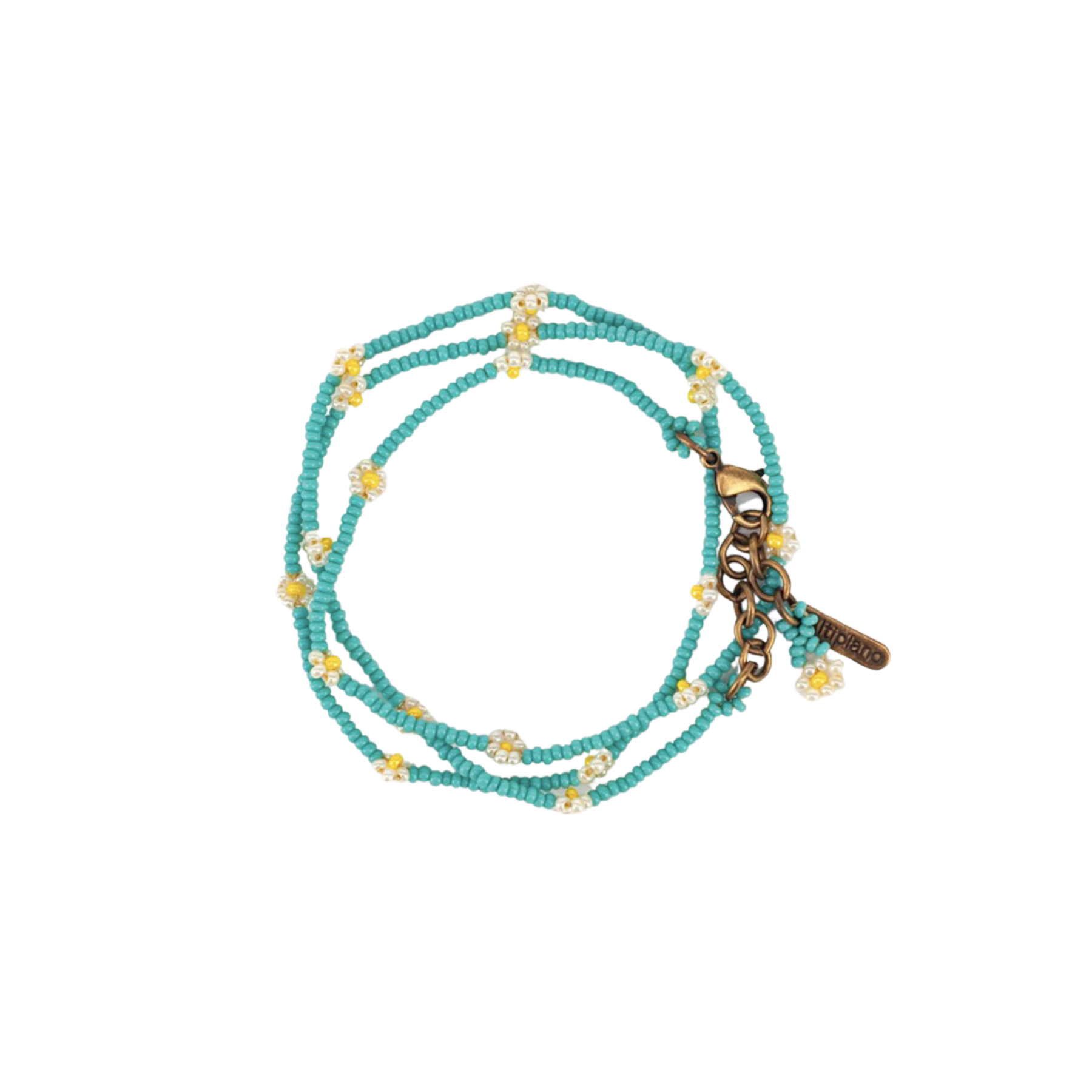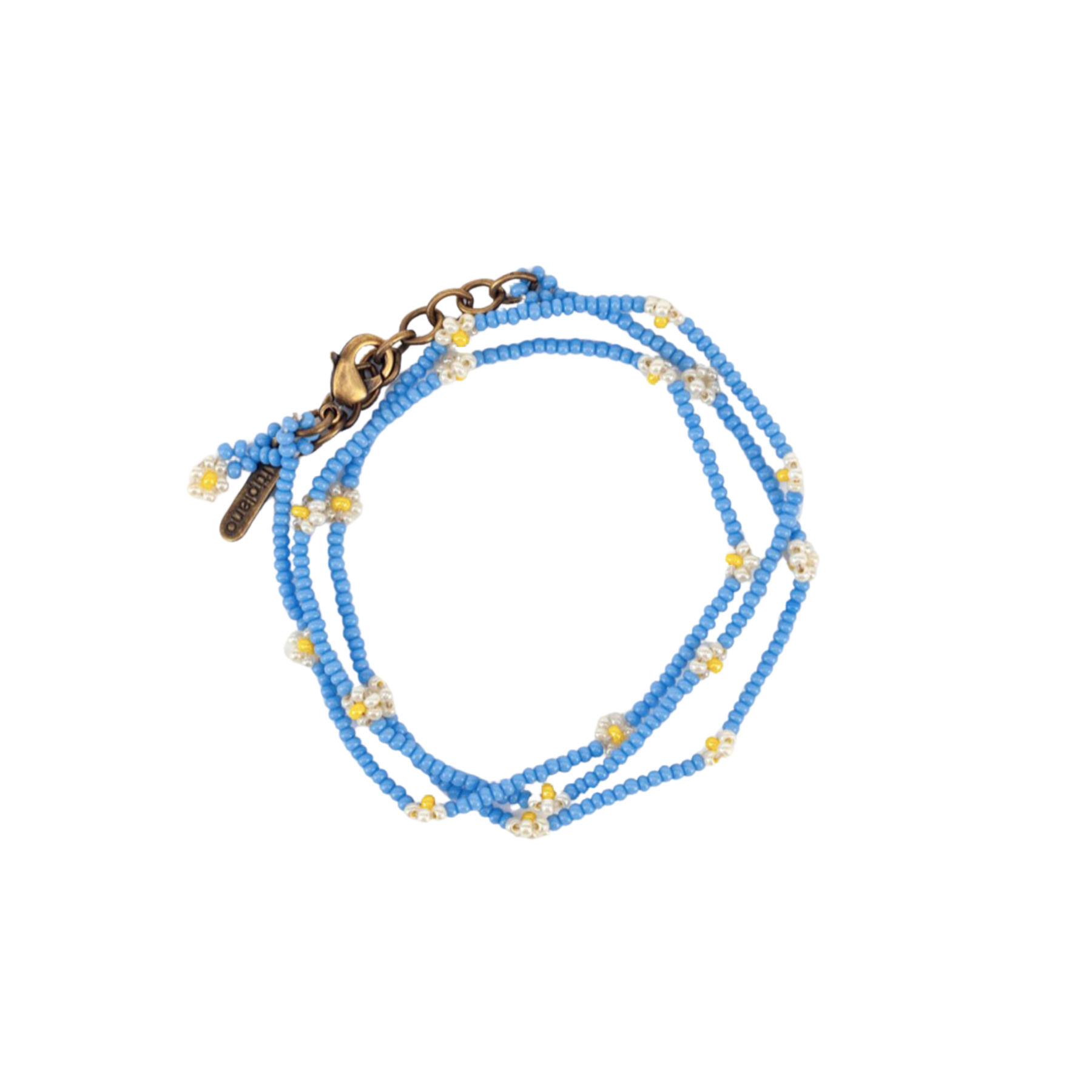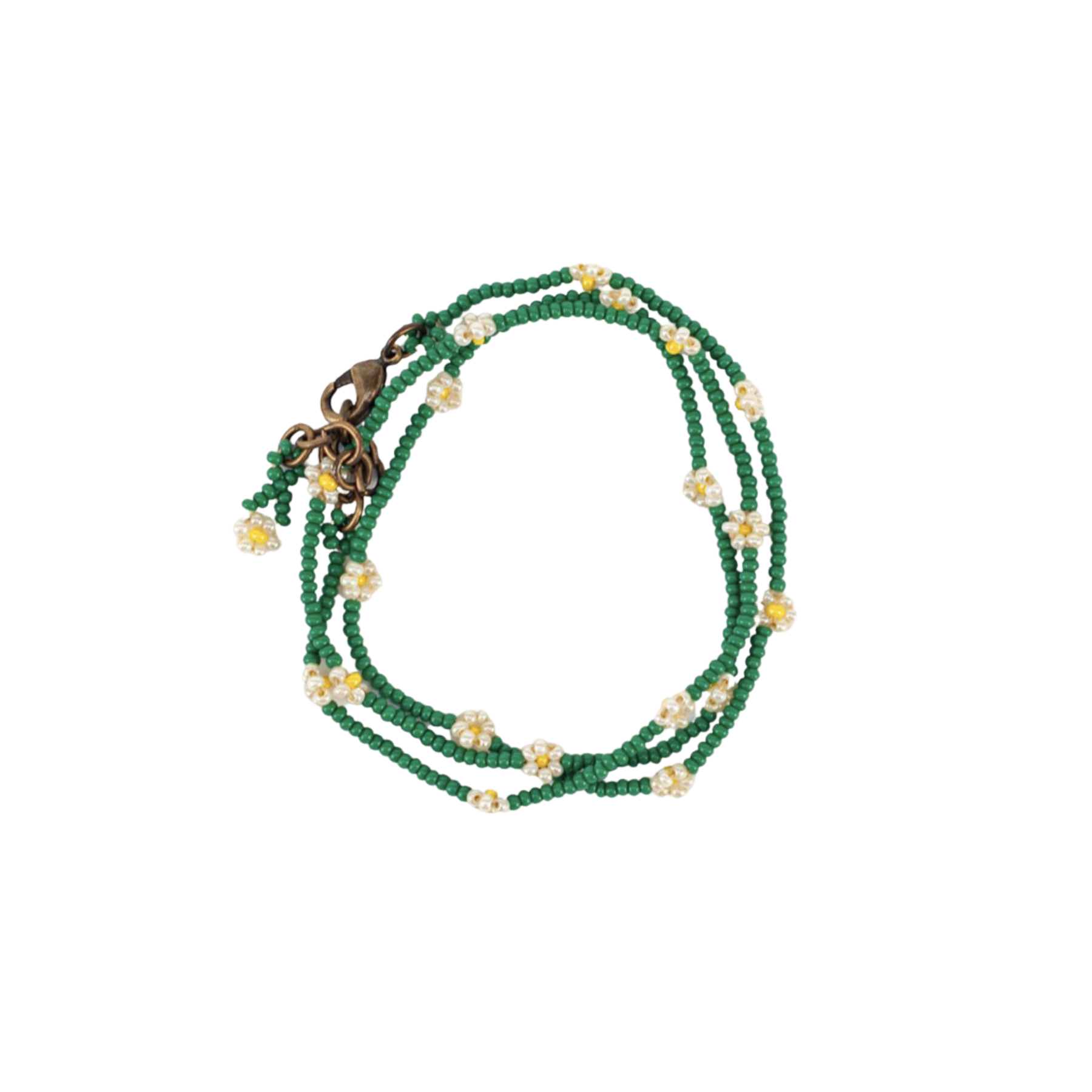 Delicate and charming, the Daisy Chain Necklace / Wrap Bracelet is a hand-beaded floral piece that effortlessly transitions from a necklace to a triple-wrapped bracelet. Featuring glass beads and an adjustable brass chain with a lobster clasp closure, this piece adds a touch of playful elegance to any look. Handcrafted in a fair trade workshop in Guatemala, it’s a beautifully versatile and ethically made accessory.