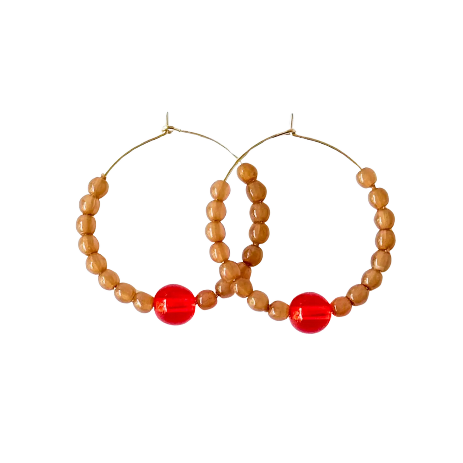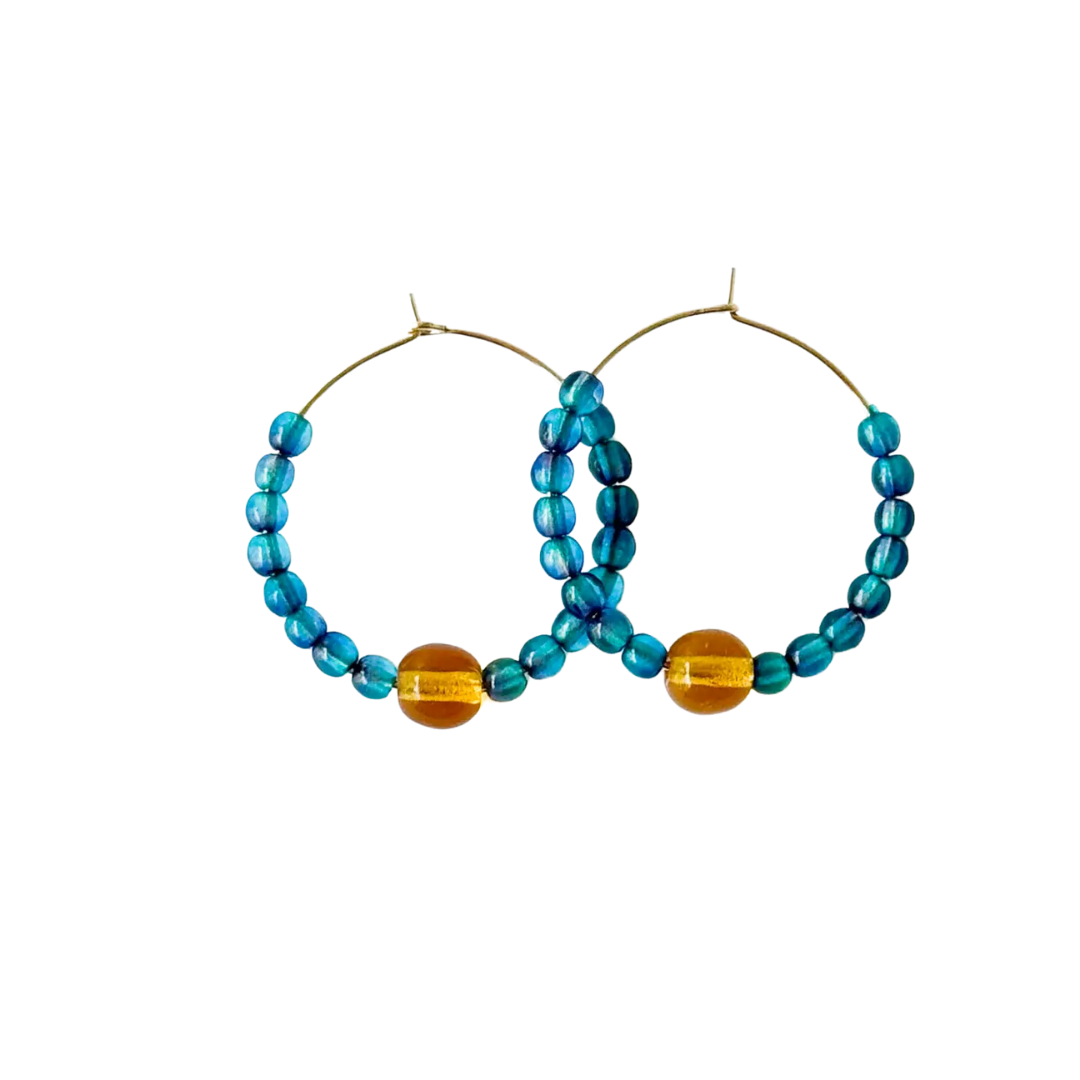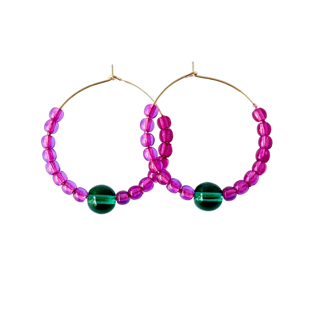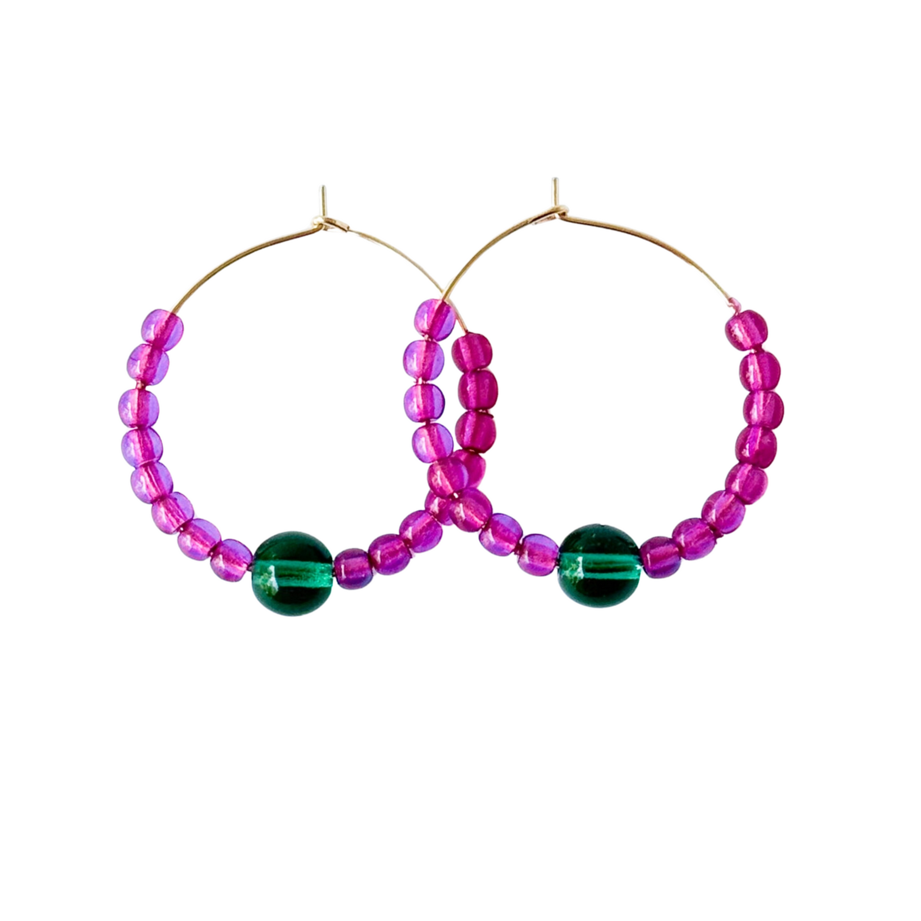 One-inch (25mm) Gold Filled Hoops with pressed glass round and smooth Czech glass beads and a choice of 6 colors. The Details: 1" round Gold Filled 6mm Czech glass beads Handmade in Burlington VT