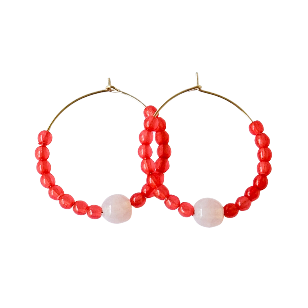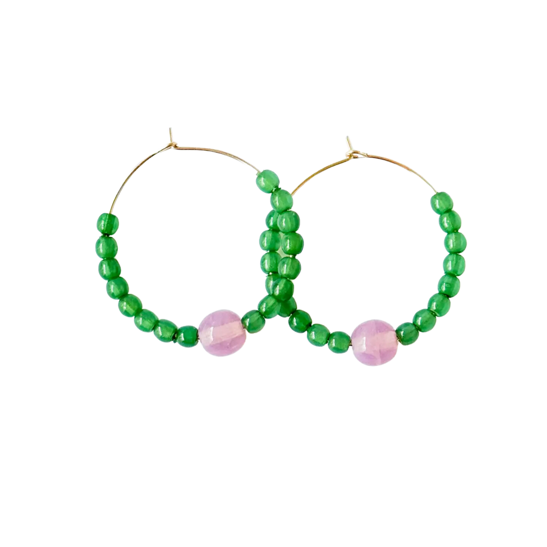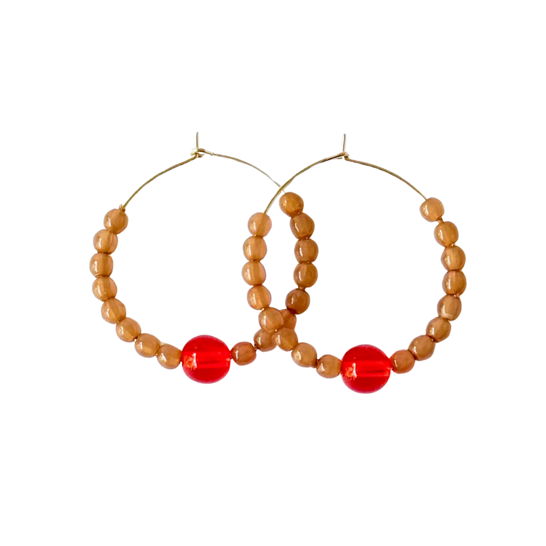 One-inch (25mm) Gold Filled Hoops with pressed glass round and smooth Czech glass beads and a choice of 6 colors. The Details: 1" round Gold Filled 6mm Czech glass beads Handmade in Burlington VT