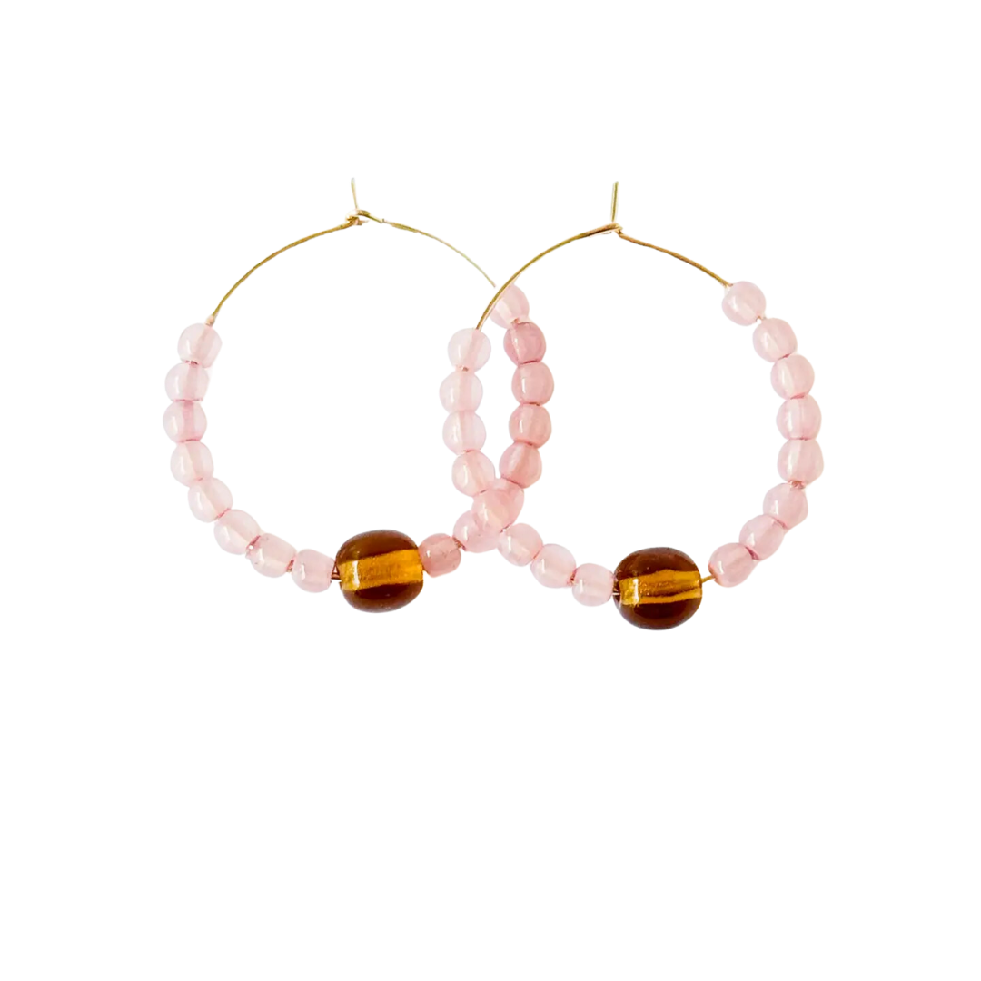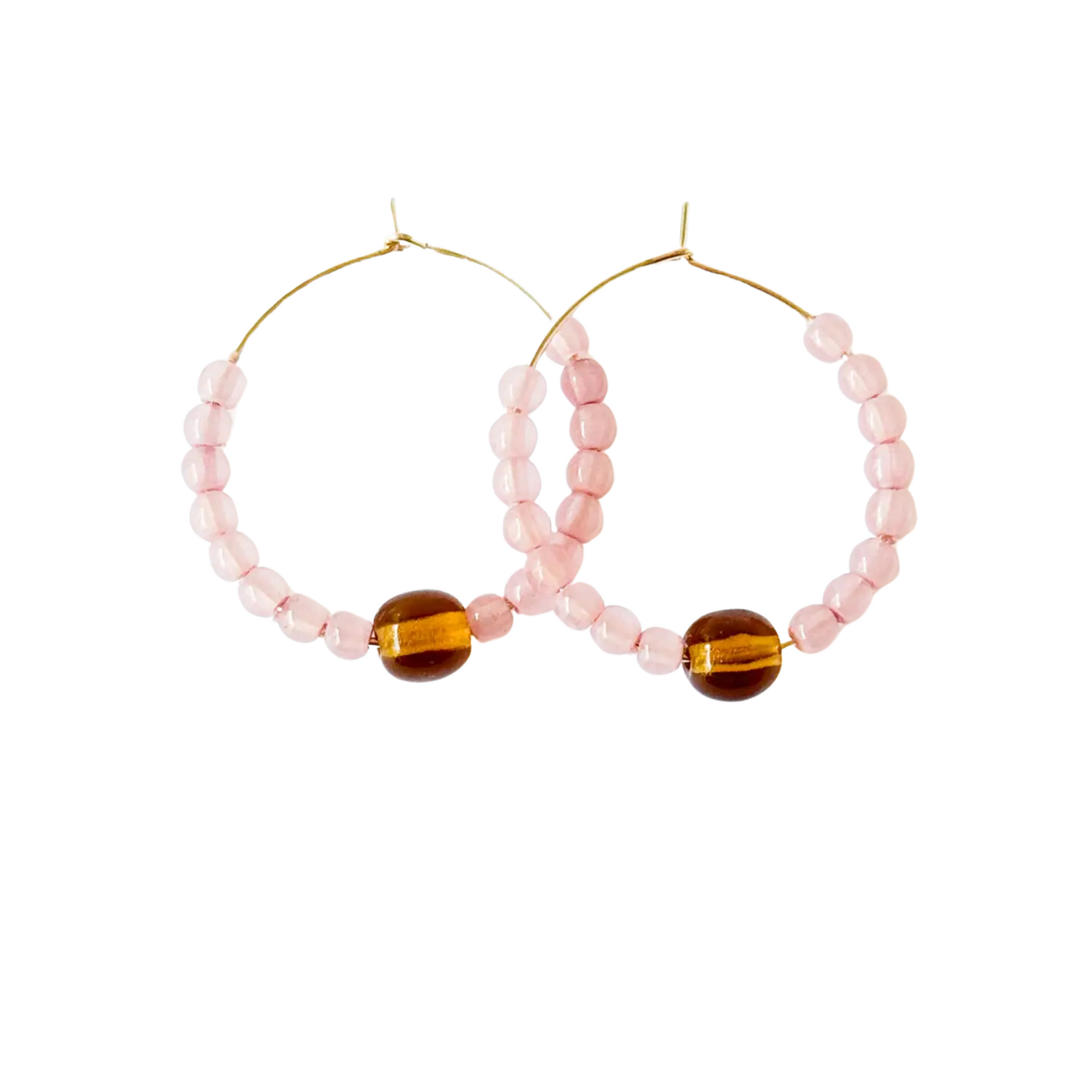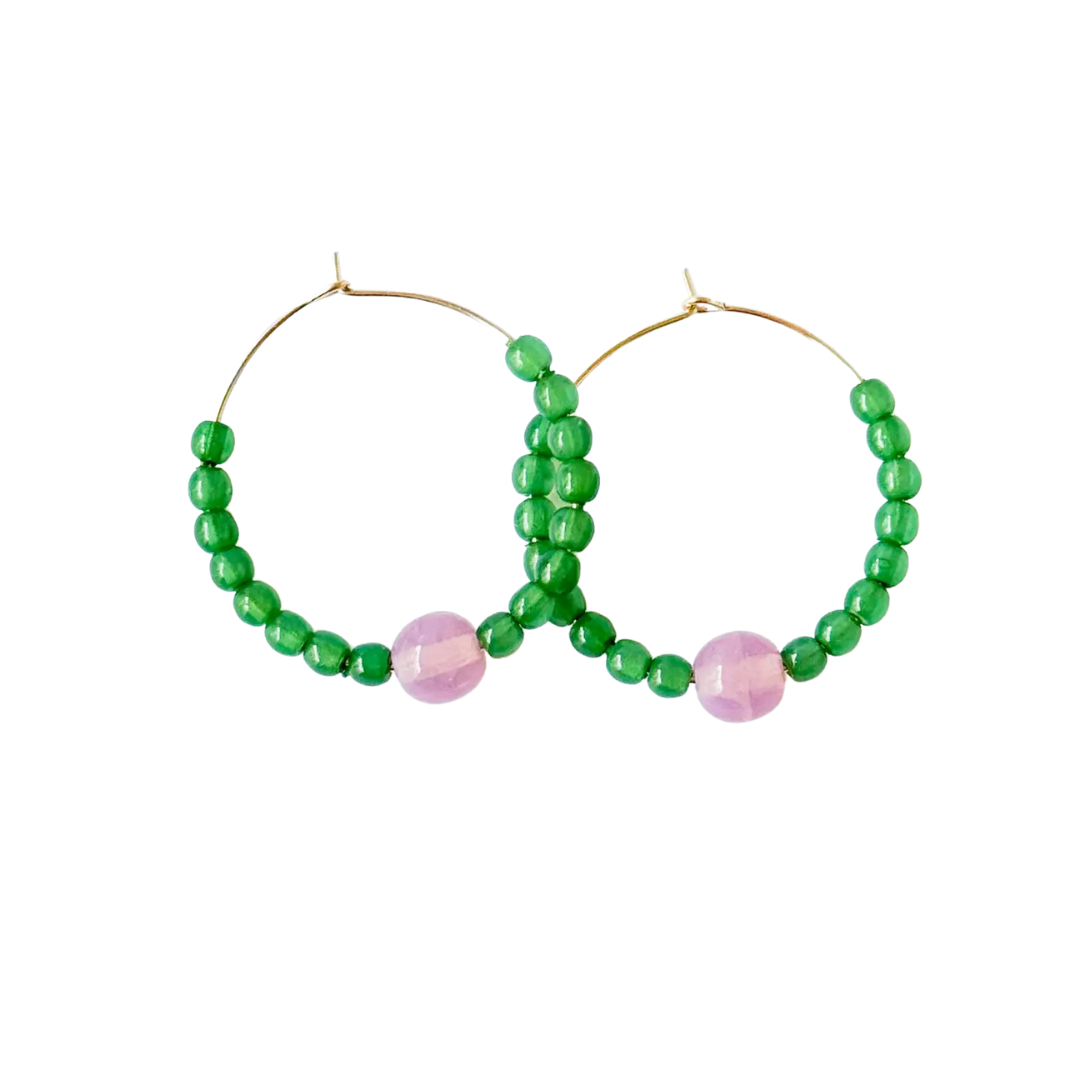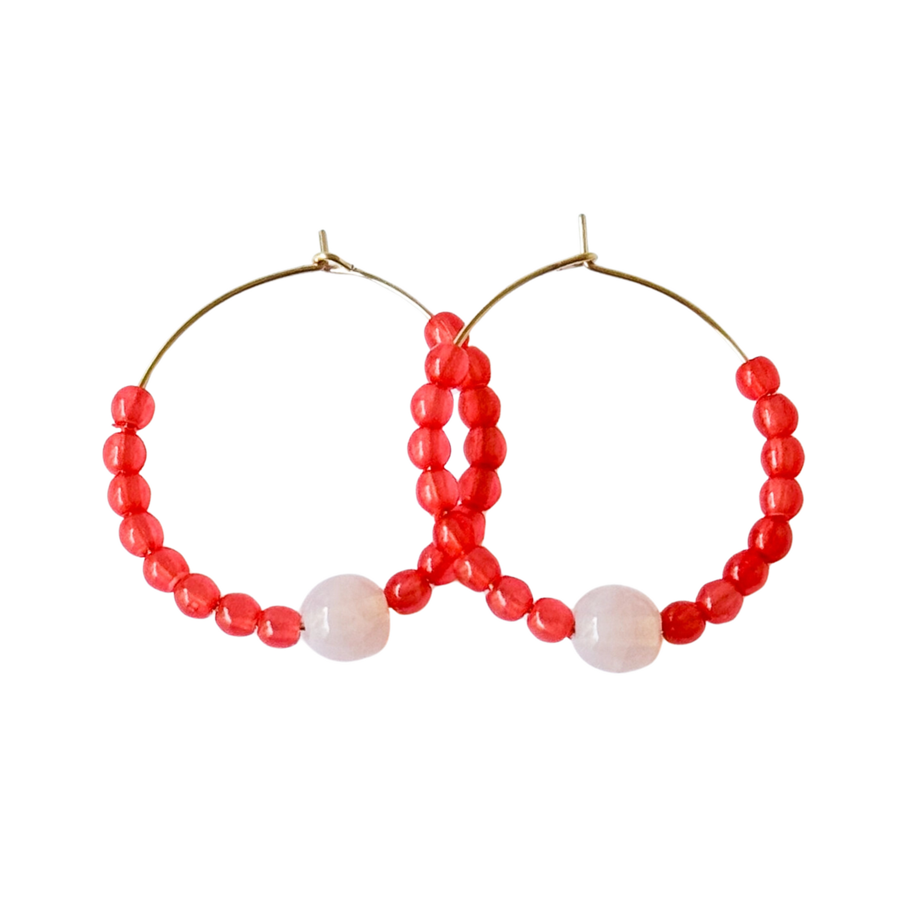 One-inch (25mm) Gold Filled Hoops with pressed glass round and smooth Czech glass beads and a choice of 6 colors. The Details: 1" round Gold Filled 6mm Czech glass beads Handmade in Burlington VT