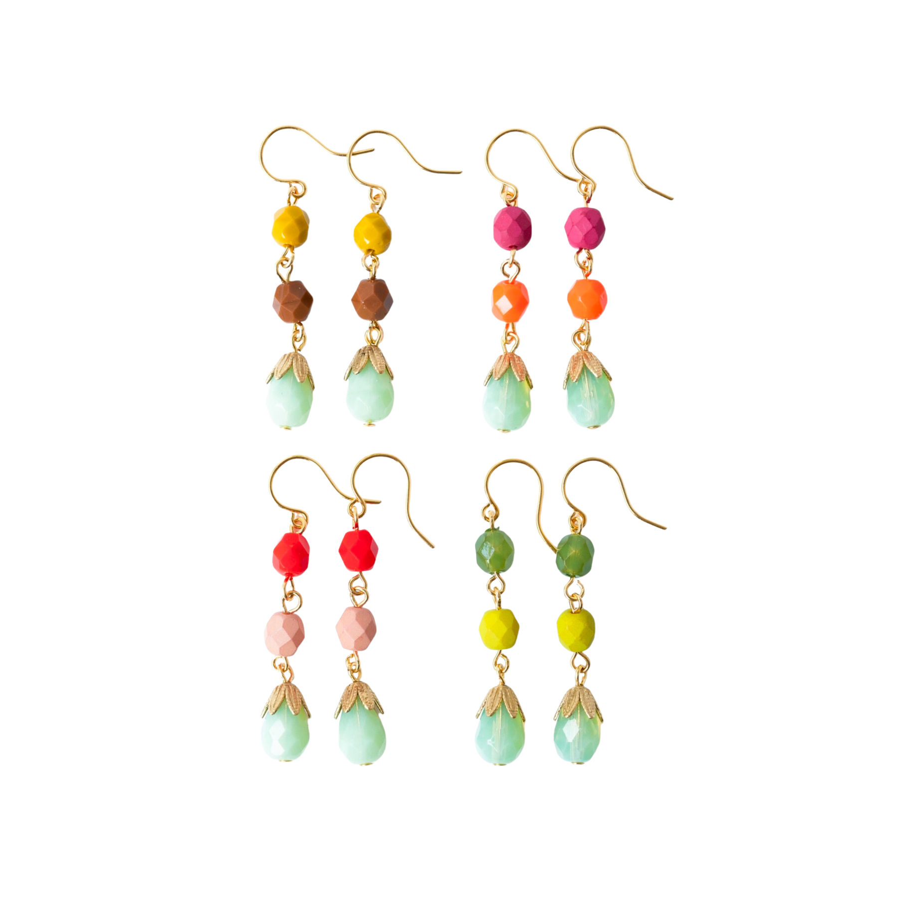 1.5" long beaded earrings in a mix of saturated and rich colors for the new season.