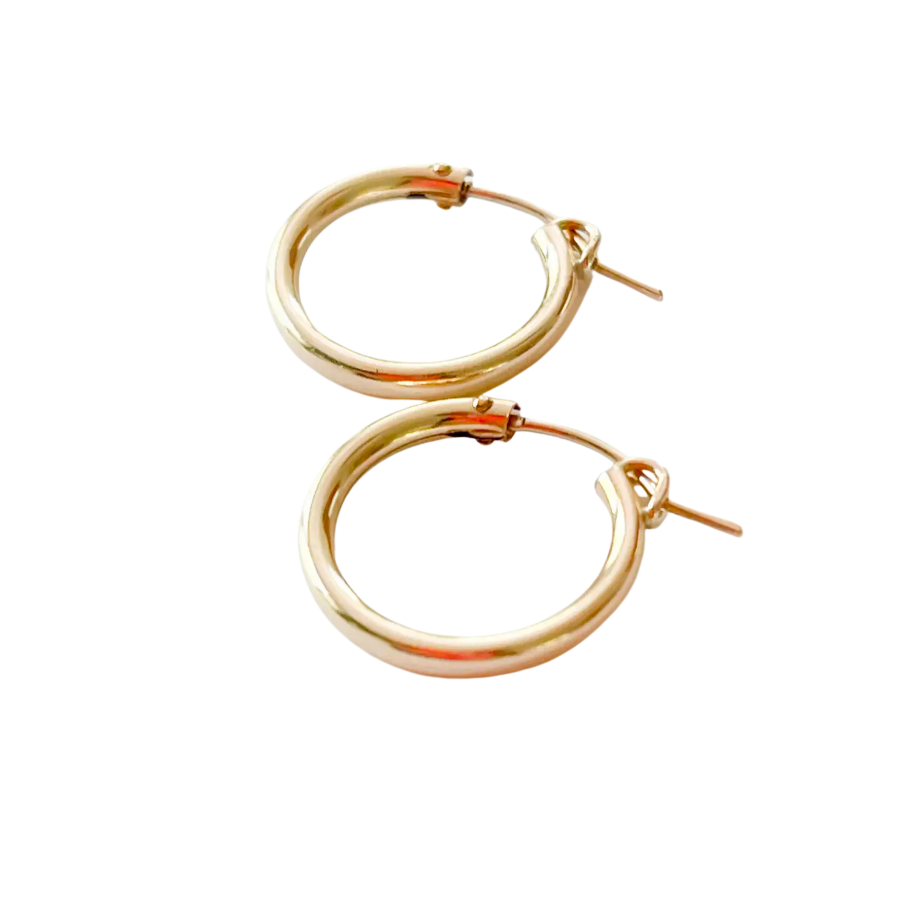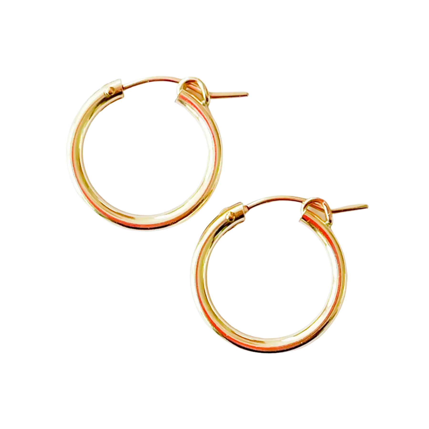 High-quality 14K gold filled hoops and huggies with a latch closure for super easy on off, the hoops are a little thick but not chunky and they are waterproof! Perfect for those beachy summer days.