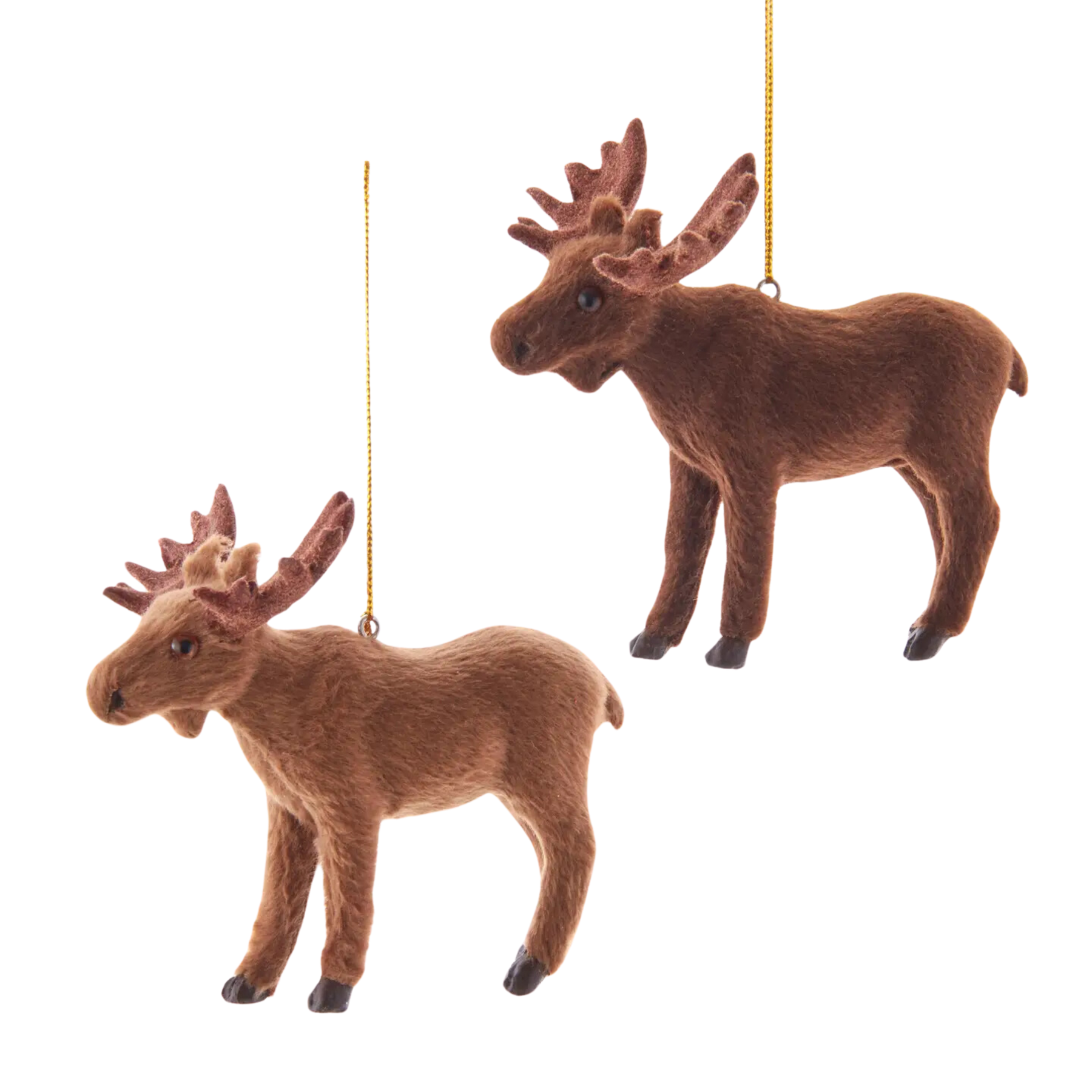 Kurt Adler's moose ornaments are a fun addition to your holiday décor or Christmas tree. This assortment includes a dark brown moose and a light brown moose, each with brown eyes.