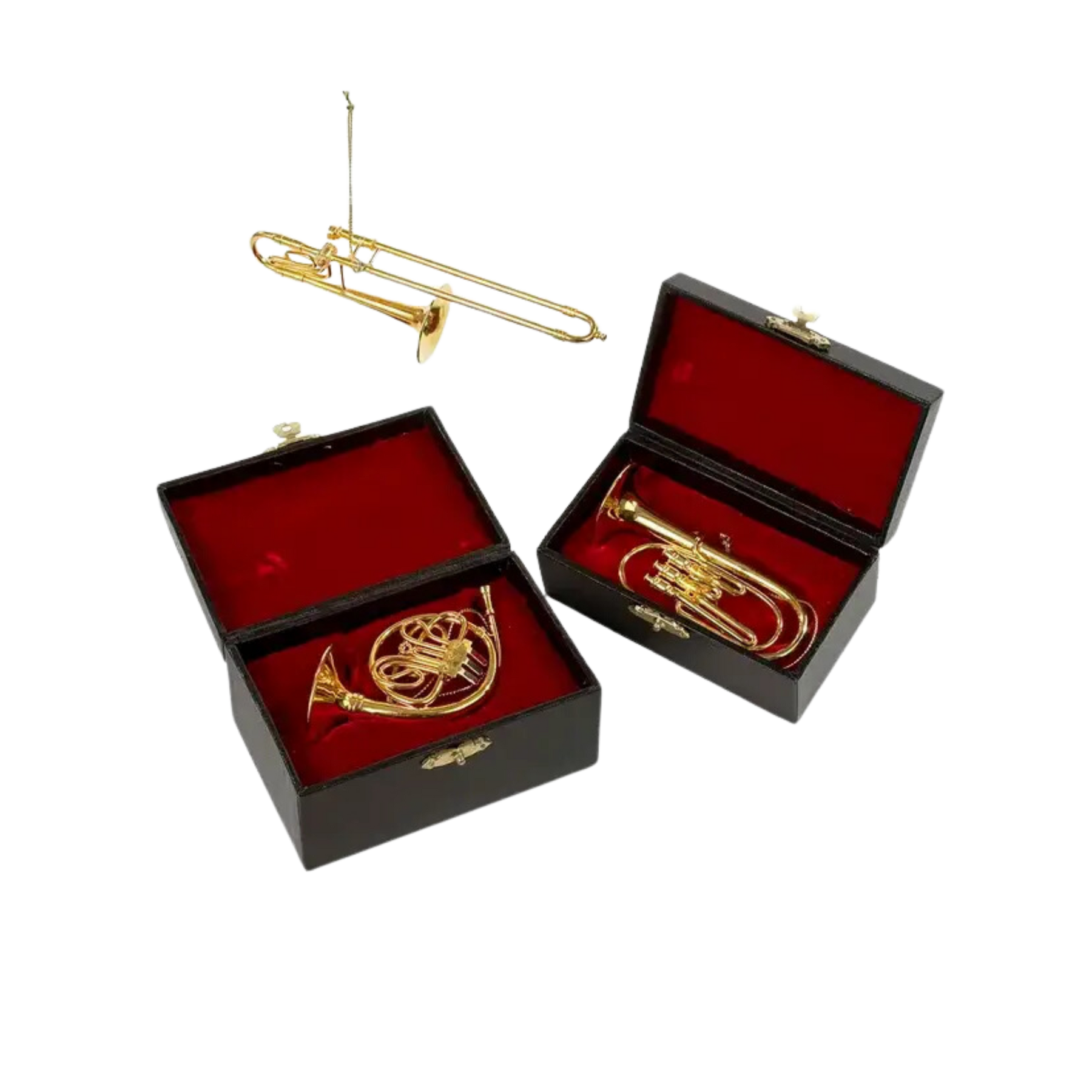 These brass musical ornaments from Kurt Adler are a stellar addition to your home décor! Perfect for any music lover, this assortment features trombone, French horn and trumpet ornaments. Each of the instruments come in a brass design.
