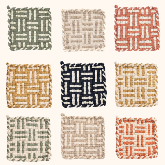 Bring warmth and craftsmanship into your kitchen with our Forest Collection Potholders. Handwoven in Ojai, California, each piece blends timeless weaving traditions with a modern palette inspired by nature. Whether you're gifting or elevating your own space, these potholders are as beautiful as they are functional.