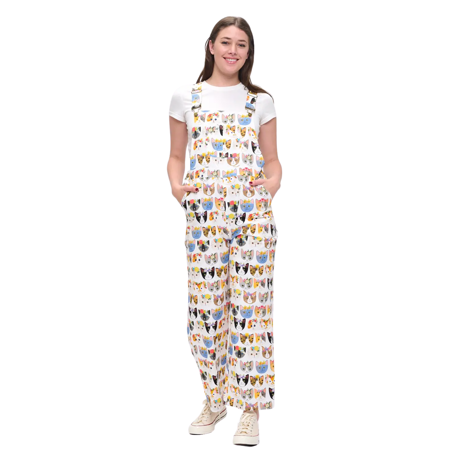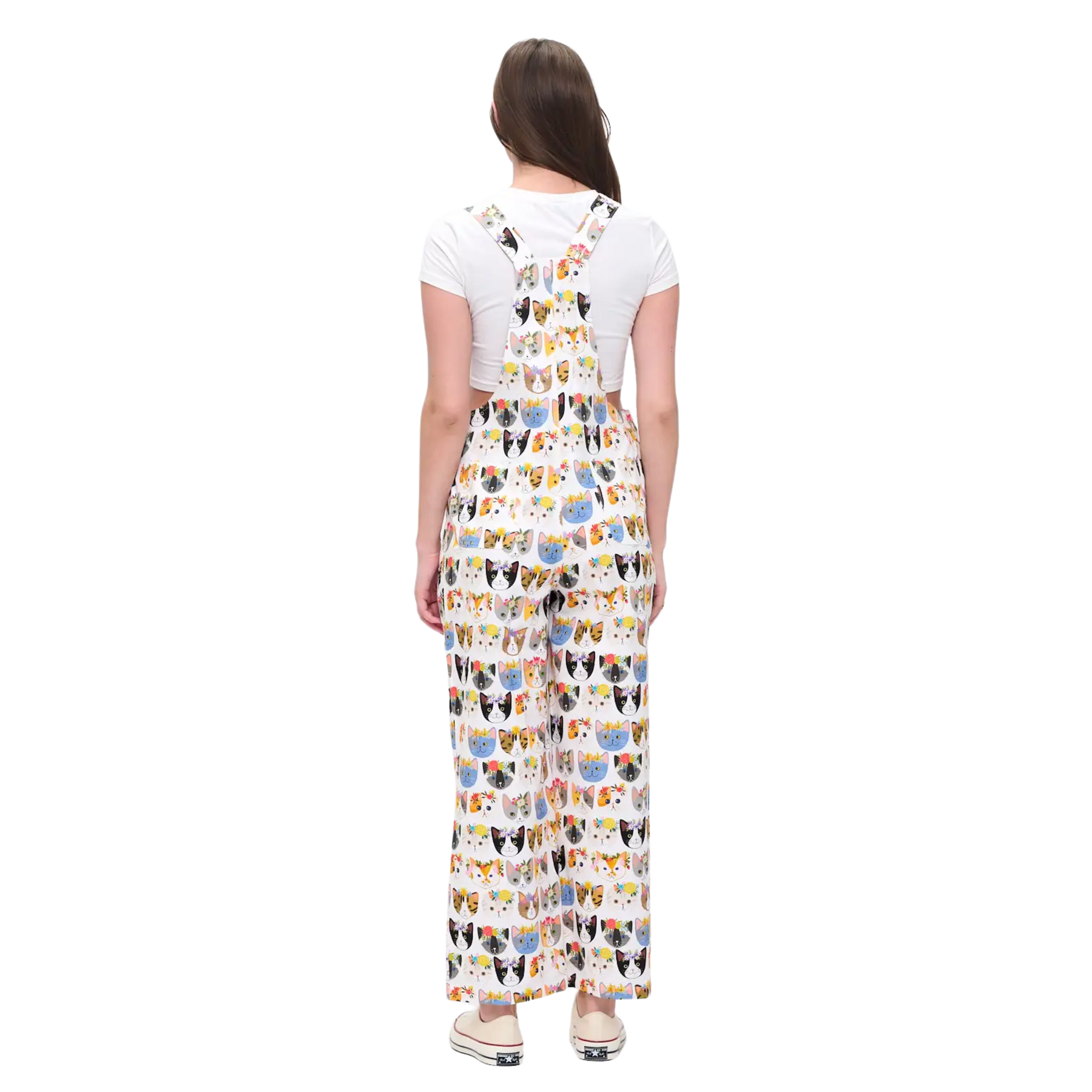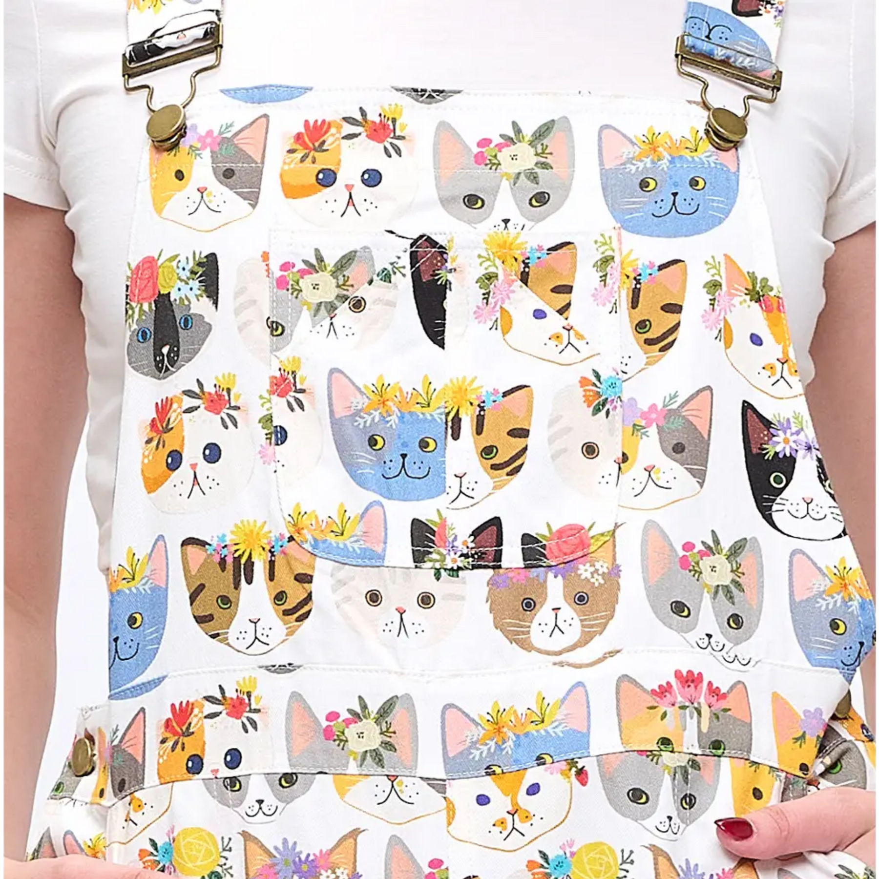 Get ready to paws and smell the flowers! These ridiculously cute overalls feature a parade of kitty faces wearing floral crowns—because why not? Made from soft 100% cotton with a relaxed fit and adjustable straps, they’re basically a wearable hug from your favorite feline.