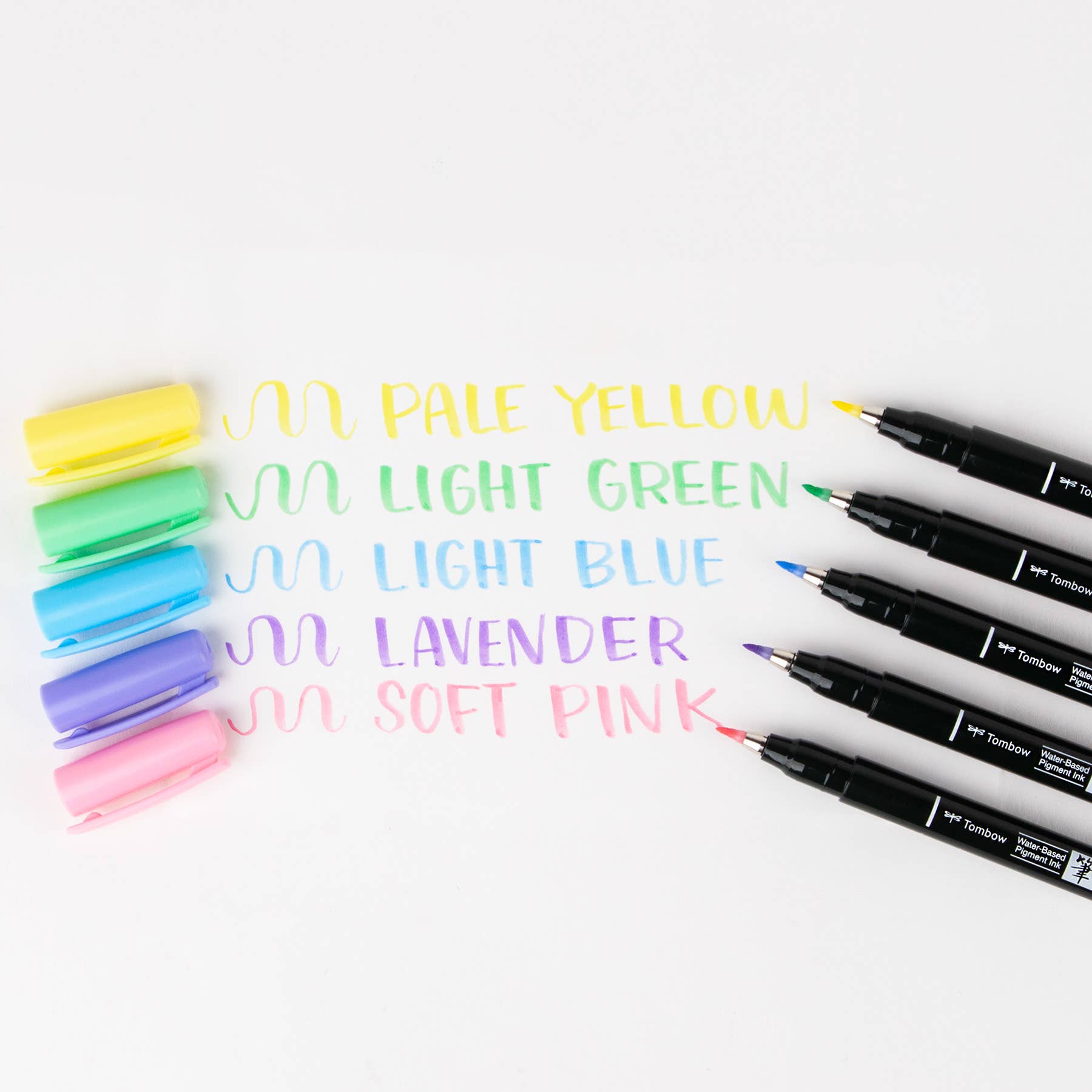 The first Fudenosuke Brush Pen that writes on dark paper! Soft, flexible brush tip creates thick and thin lines by changing pen pressure. Water-based pigment ink appears as brilliant pastel colors on white paper and chalky pastels on dark paper. When using on dark paper, ink initially appears transparent and color intensifies as it dries. For optimal opacity on dark paper, apply 2-3 layers to intensify saturation. The water-resistant ink won’t bleed through most papers. Great for beginner brush calligraphy, hand lettering, and illustration. Non-refillable. Store horizontally.
