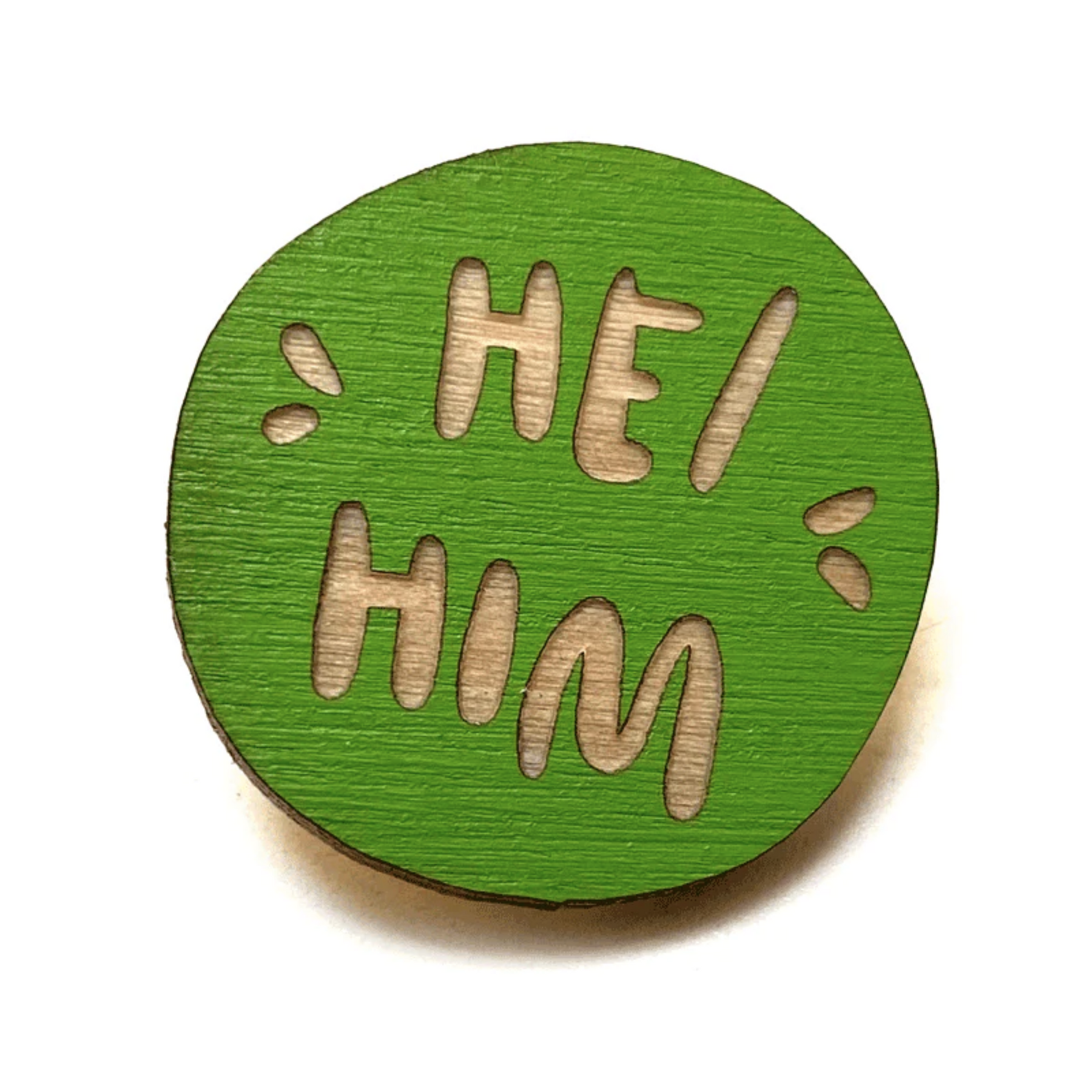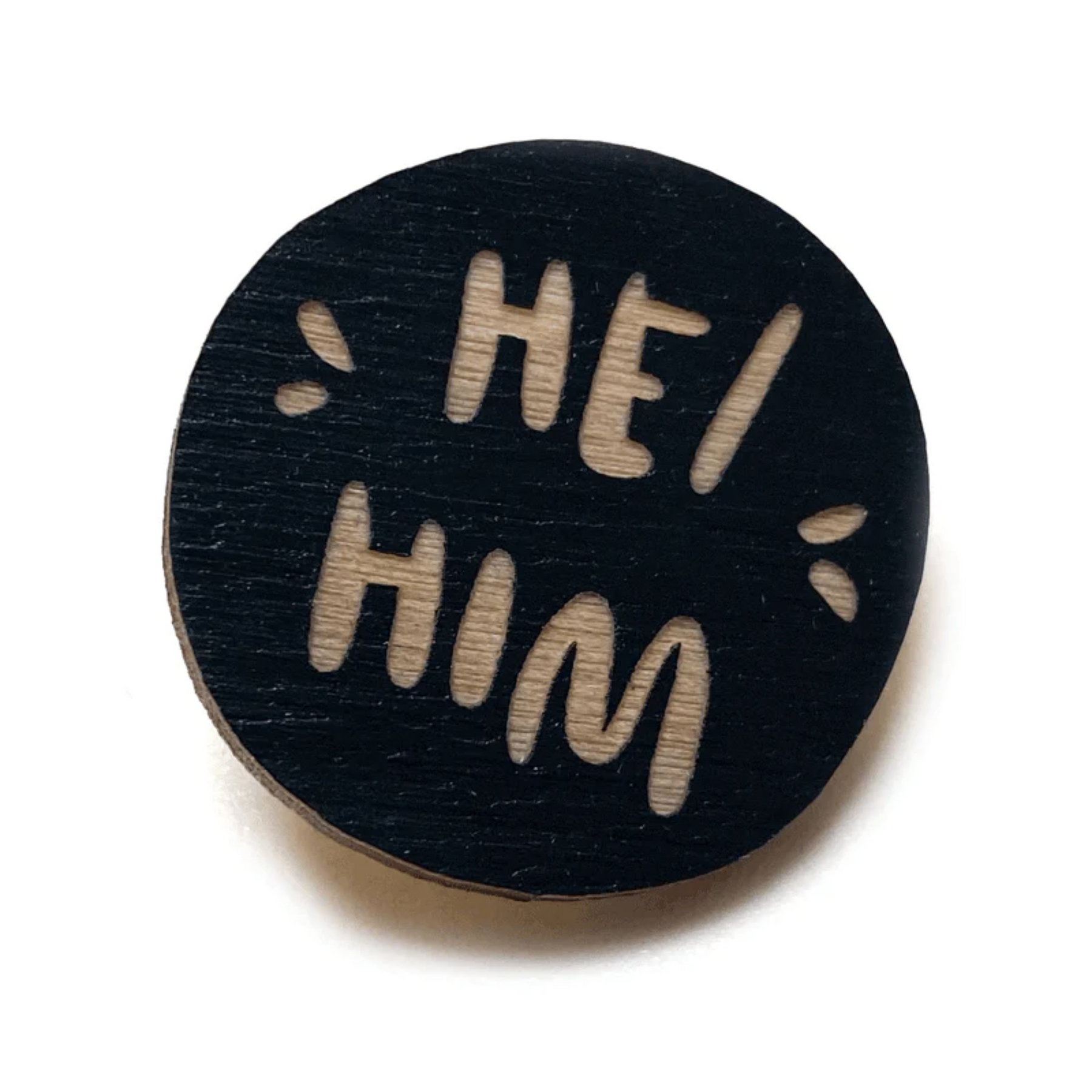 A pin designed to help others to use the appropriate pronouns! Each pin is laser-engraved hand-painted 1/8" birchwood. Pin is tie-tack style with a metal butterfly clasp.