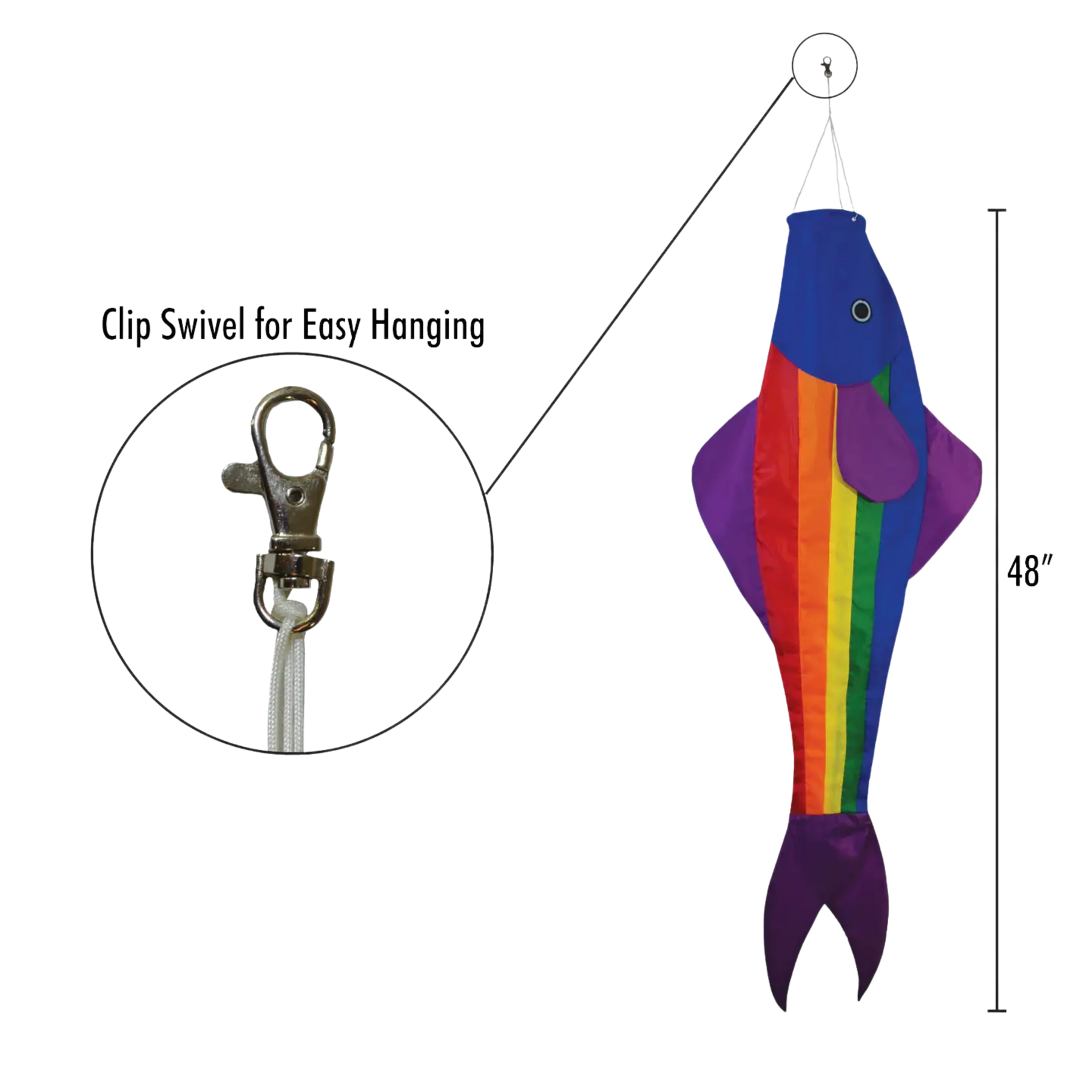Reel in the color! One of our all-time top sellers, the Rainbow Fishy Fishsock brings vibrant charm and playful motion to any outdoor space. With its bright applique panels and fishy shape, it’s guaranteed to turn heads (and tails!) every time the wind blows.