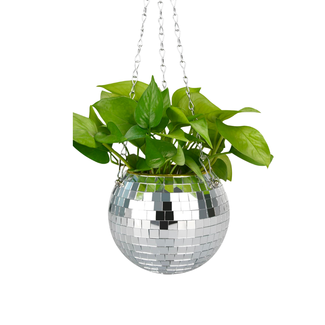 Make your plants the life of the party with this 6-inch wide Disco Ball Hanging Planter! With its mirrored surface and retro charm, it bounces light like nobody's business—bringing glitz, glam, and good vibes to any space.