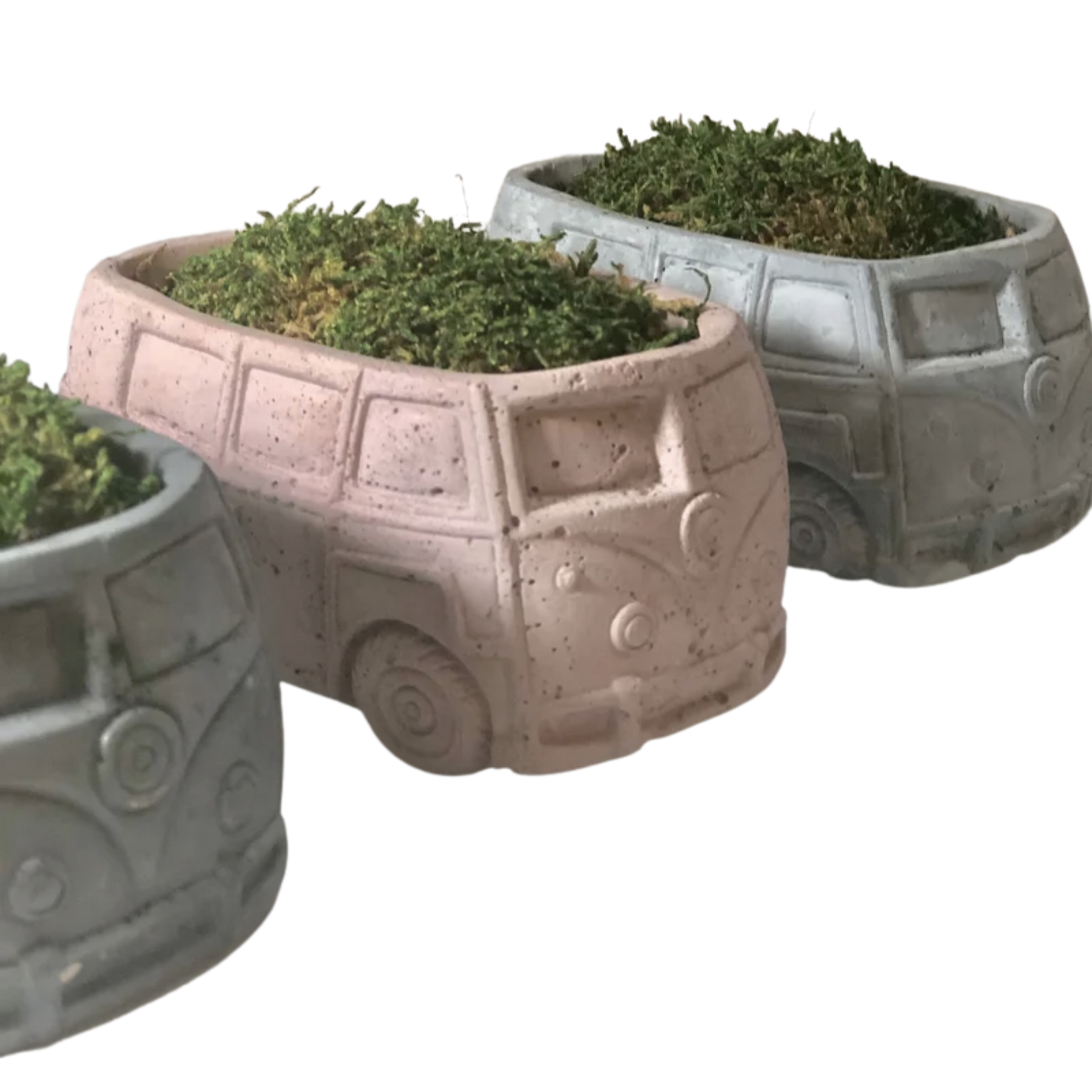 Nostalgic Bus Concrete Planter, perfect for succulents, air plants. Cast in concrete, so unique, beautiful natural coloring, and definitely a conversation piece.