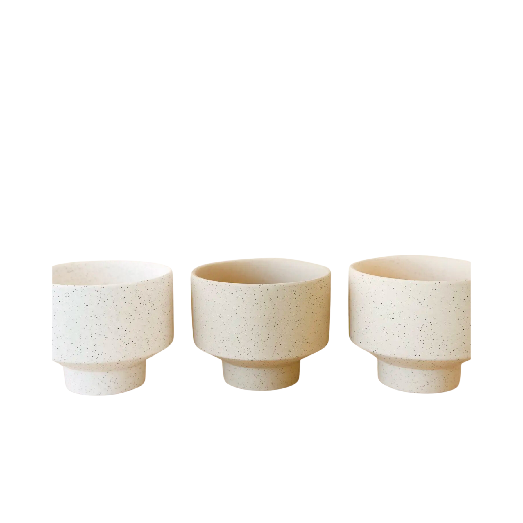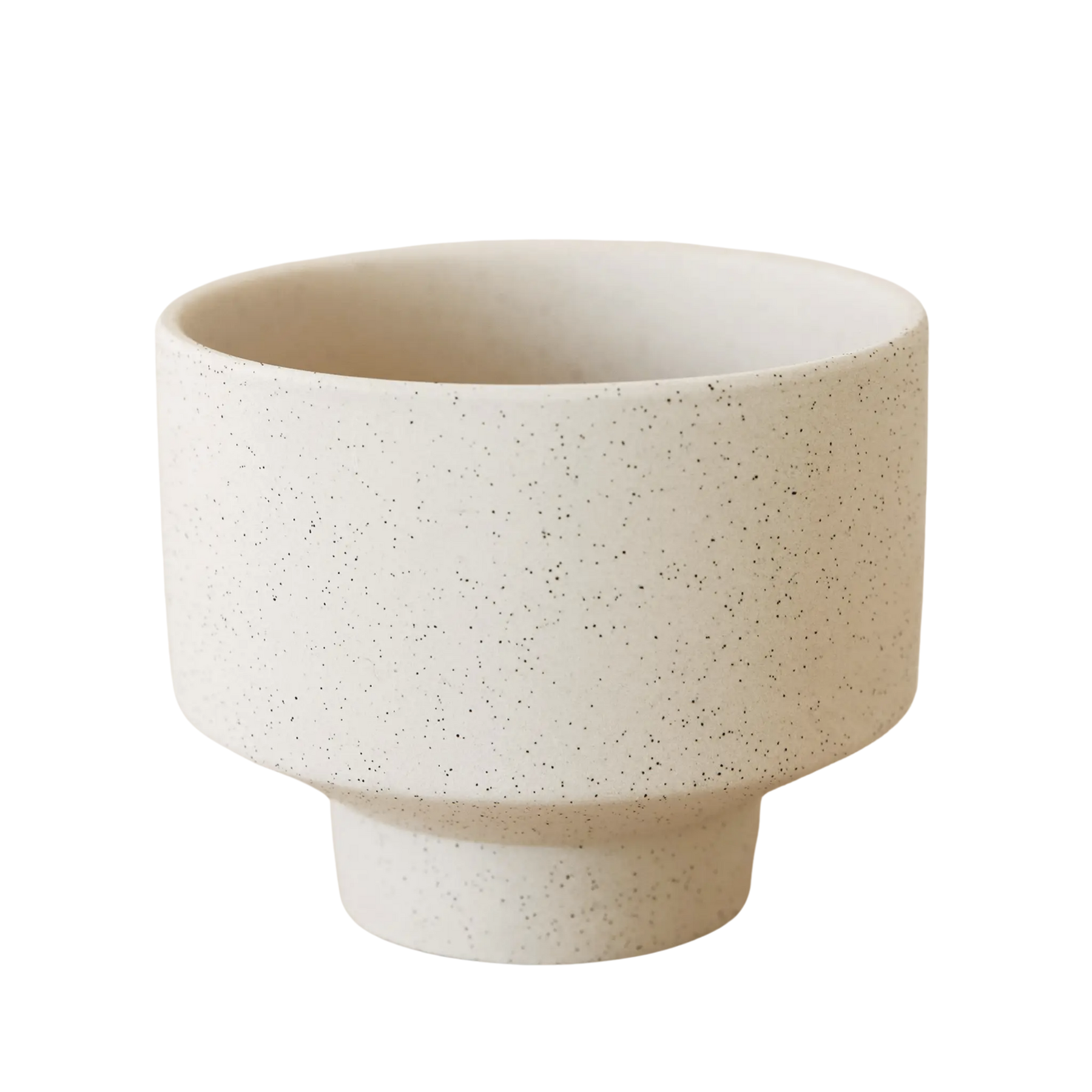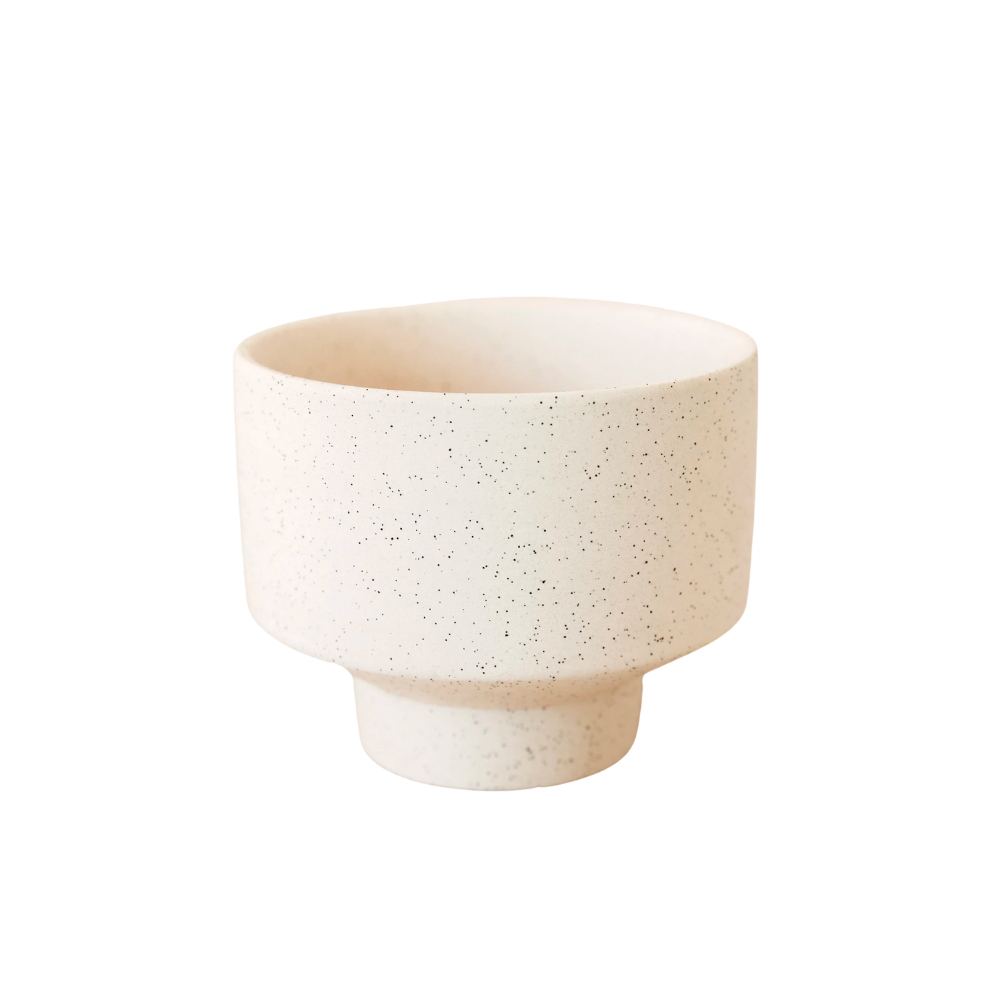 Defined by its footed base and speckled finish, this ceramic pot will elevate your plantings. Its minimalist design is one we just can't get enough of. It's unique in its shape and finish.