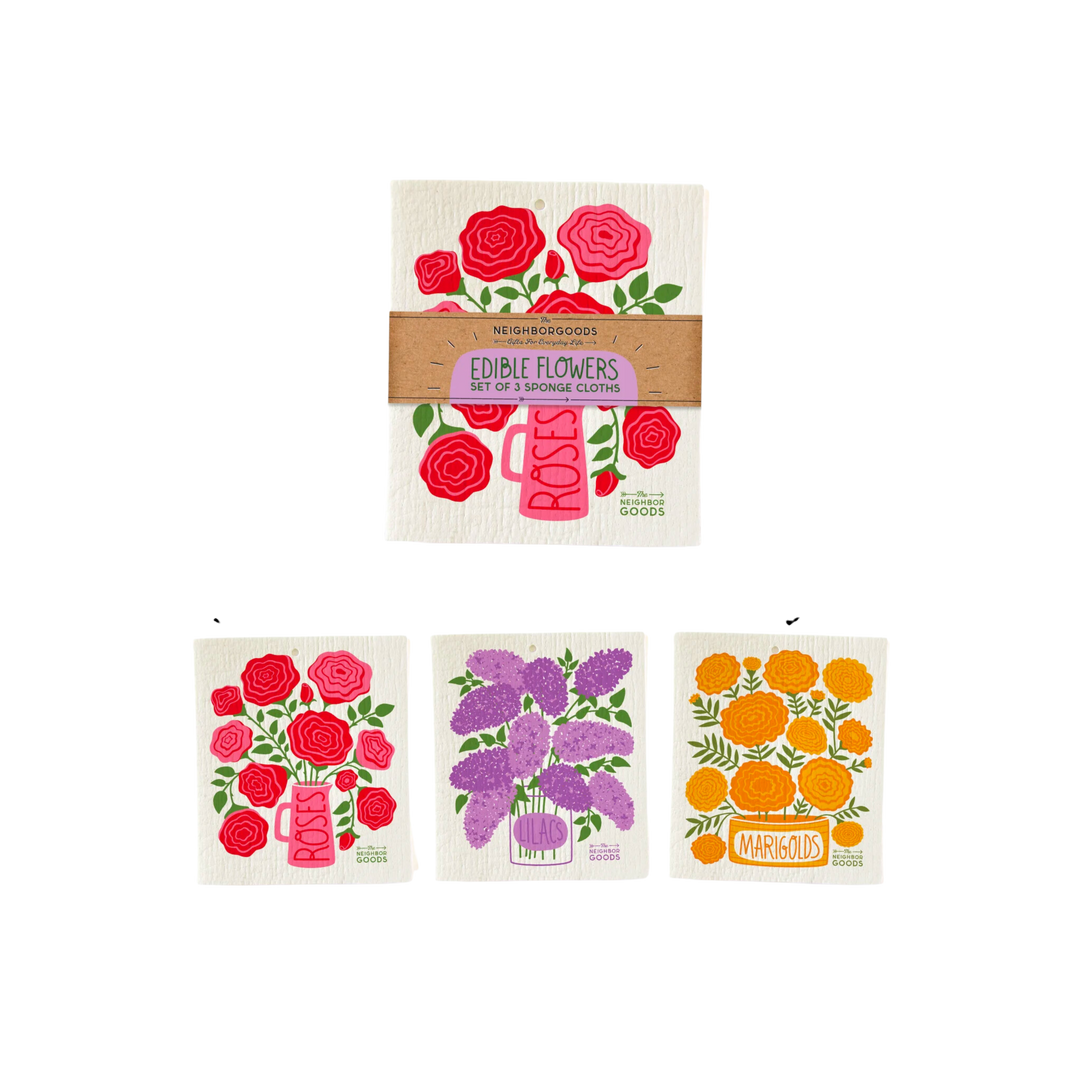 Edible Flowers Sponge Cloth Set of 3