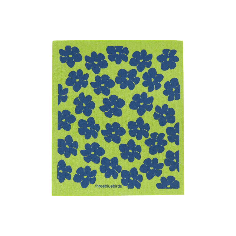 Blue Poppies on Green Swedish Dishcloth