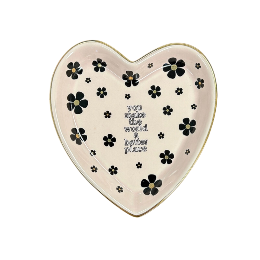 You Make The World A Better Place Blush Pink Heart Shaped Trinket Tray