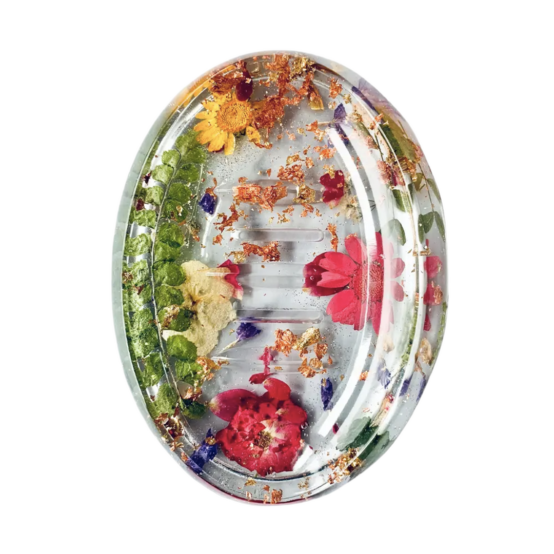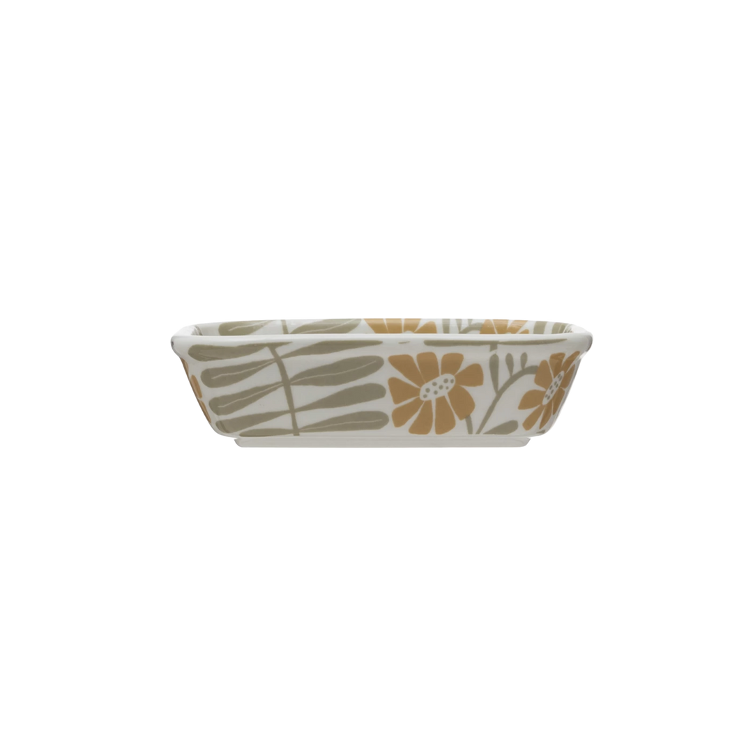 Hand-Stamped Stoneware Soap Dish w/ Flowers