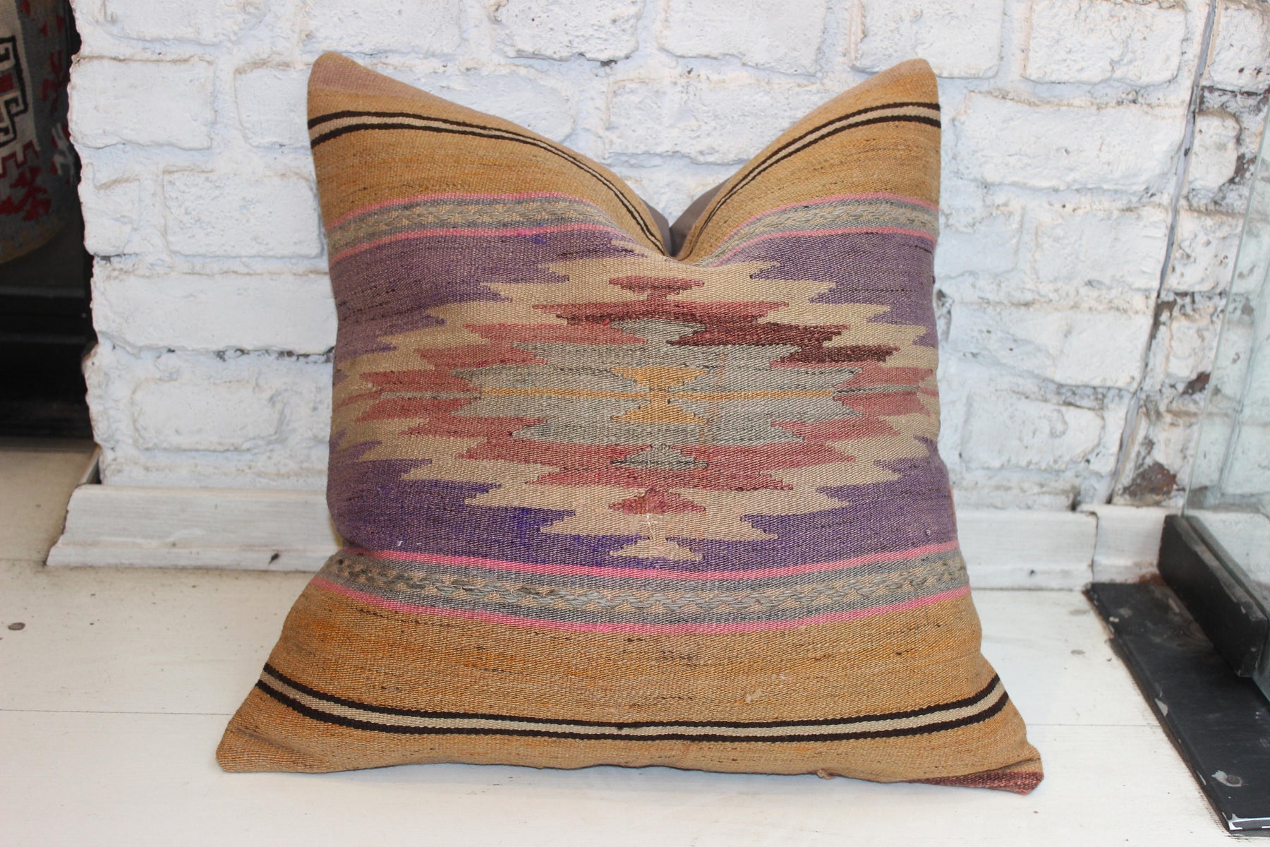 The rug pillow is made of finest wool on cotton and colored vegetable dyes of the area.