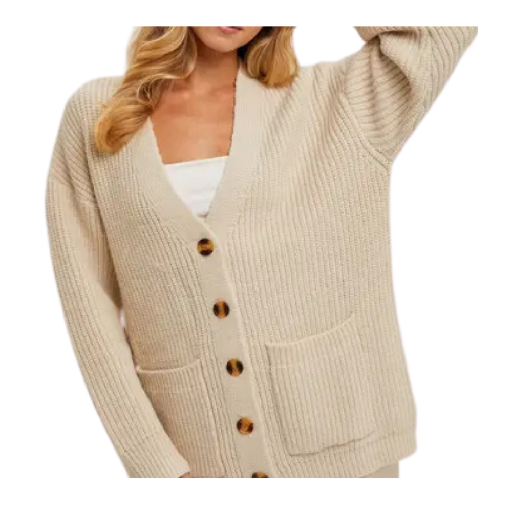 The button-down ribbed knit sweater cardigan is a cozy and versatile wardrobe essential. Featuring a button-down front, this cardigan combines functionality with style, making it easy to layer over different outfits. The ribbed knit texture adds a touch of sophistication and structure, while the soft fabric ensures comfort. Perfect for transitioning between seasons, this cardigan can be dressed up or down, offering endless styling possibilities for both casual and polished looks.