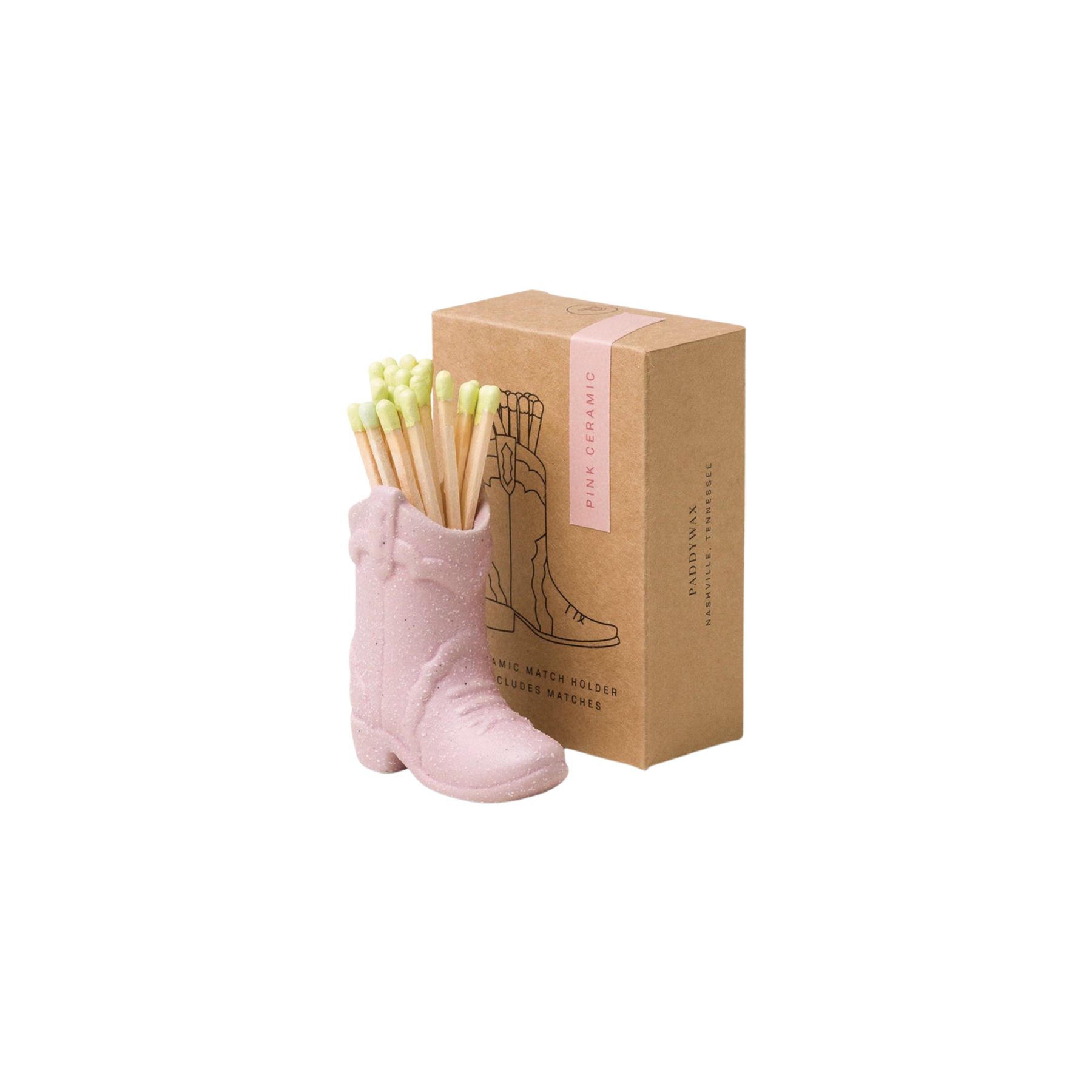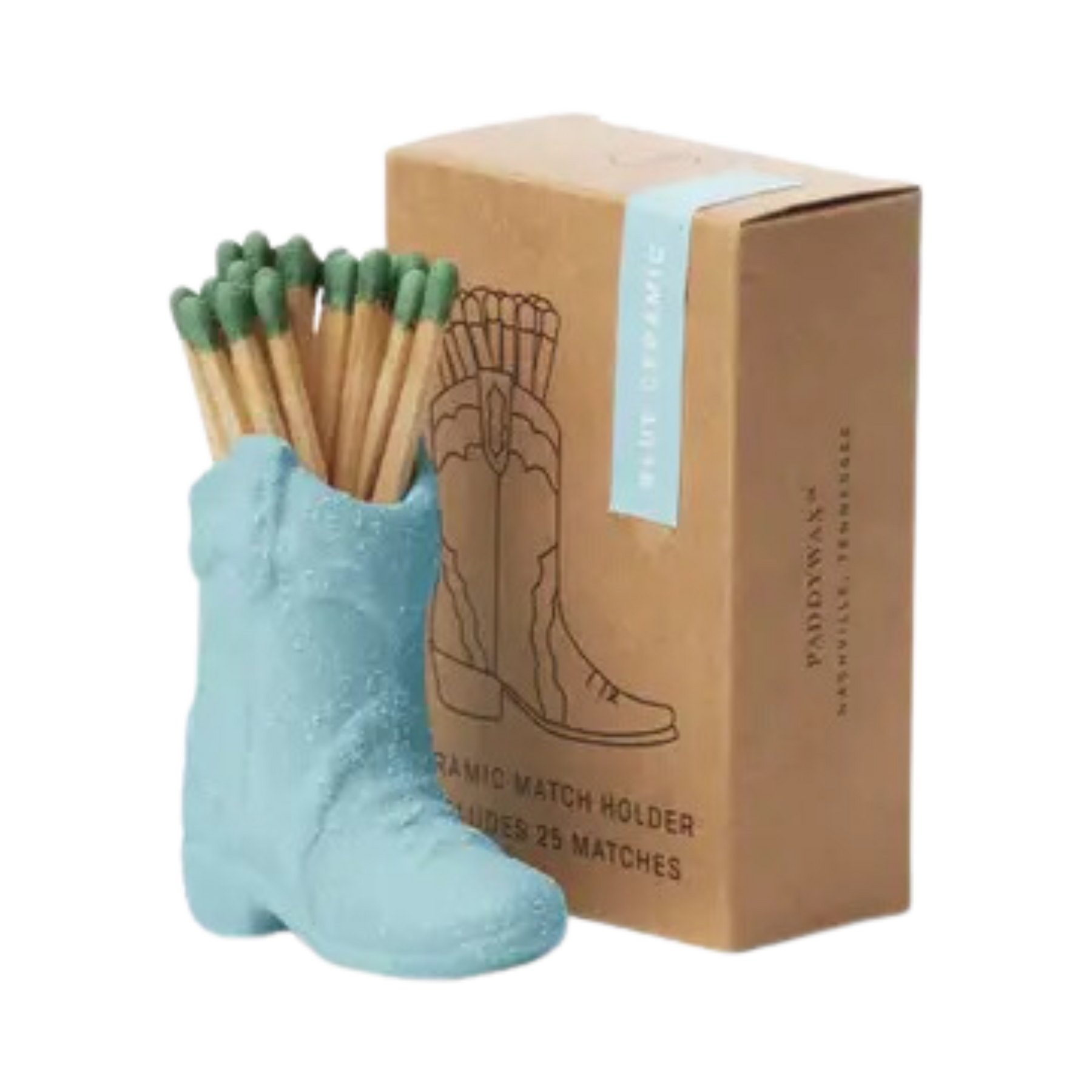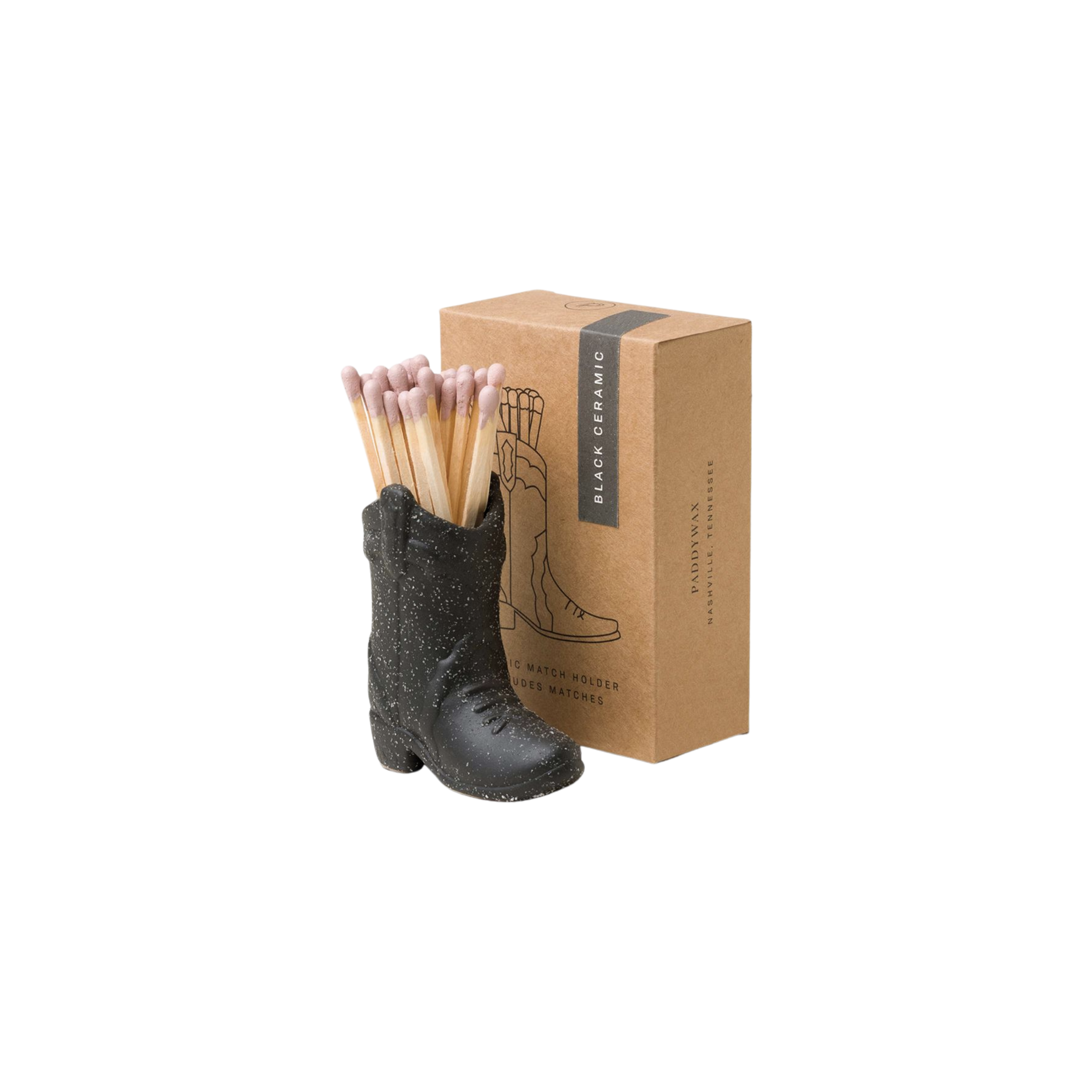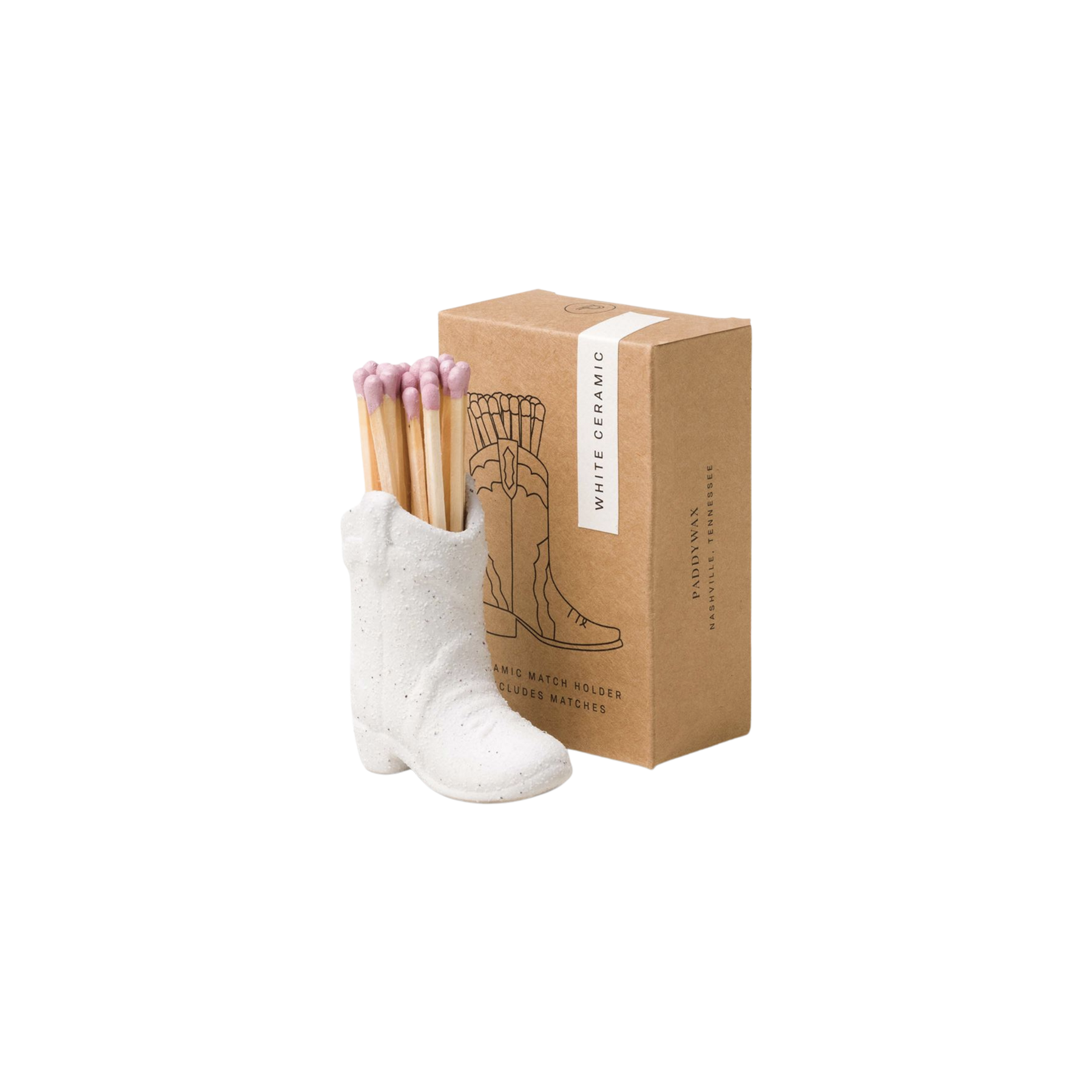 Saddle up for a flicker of fun! This vintage-inspired ceramic Cowboy Boot Match Holder is ready to light the way. Complete with 25 colorful safety matches and a built-in striker on the bottom, this boot adds charm to any shelf, table, or campfire setup. Once the matches run out, you can strike any match on the rough ceramic surface—yee-haw!