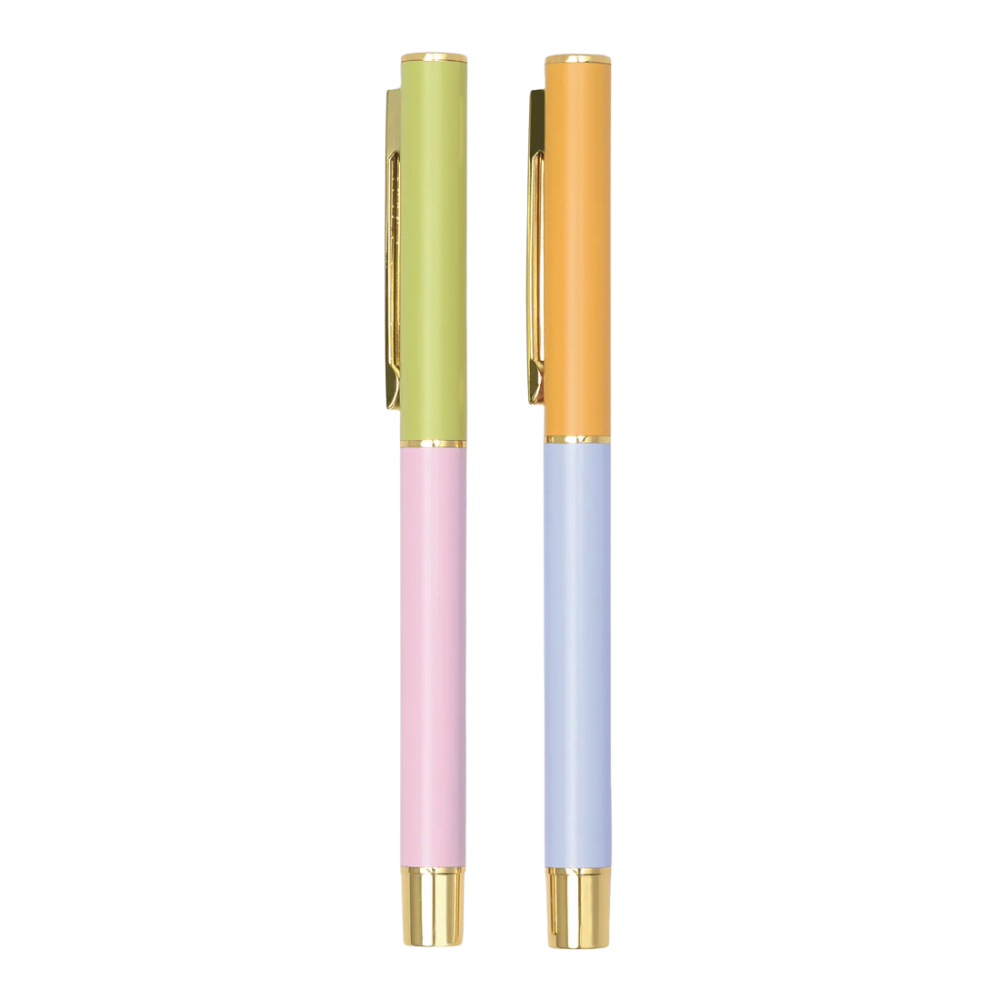 Brighten up the blah with our hot-hued writing utensils. Every set features two pens, each filled with rich black ink and decorated in vibrant, contrasting colors with a matte finish.