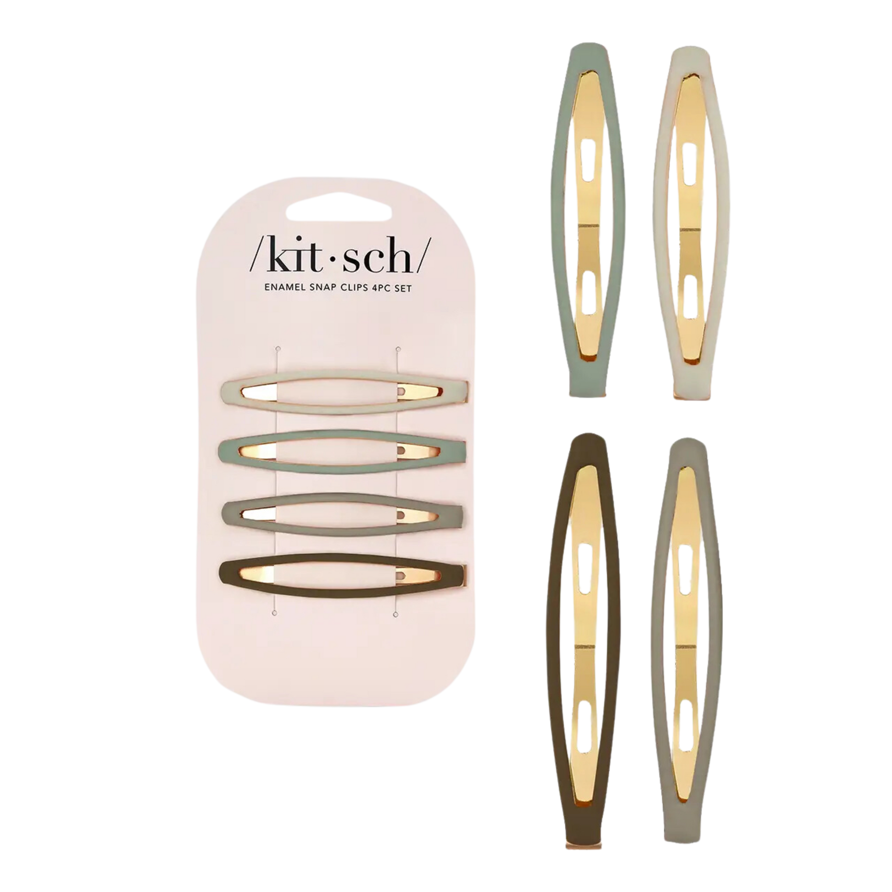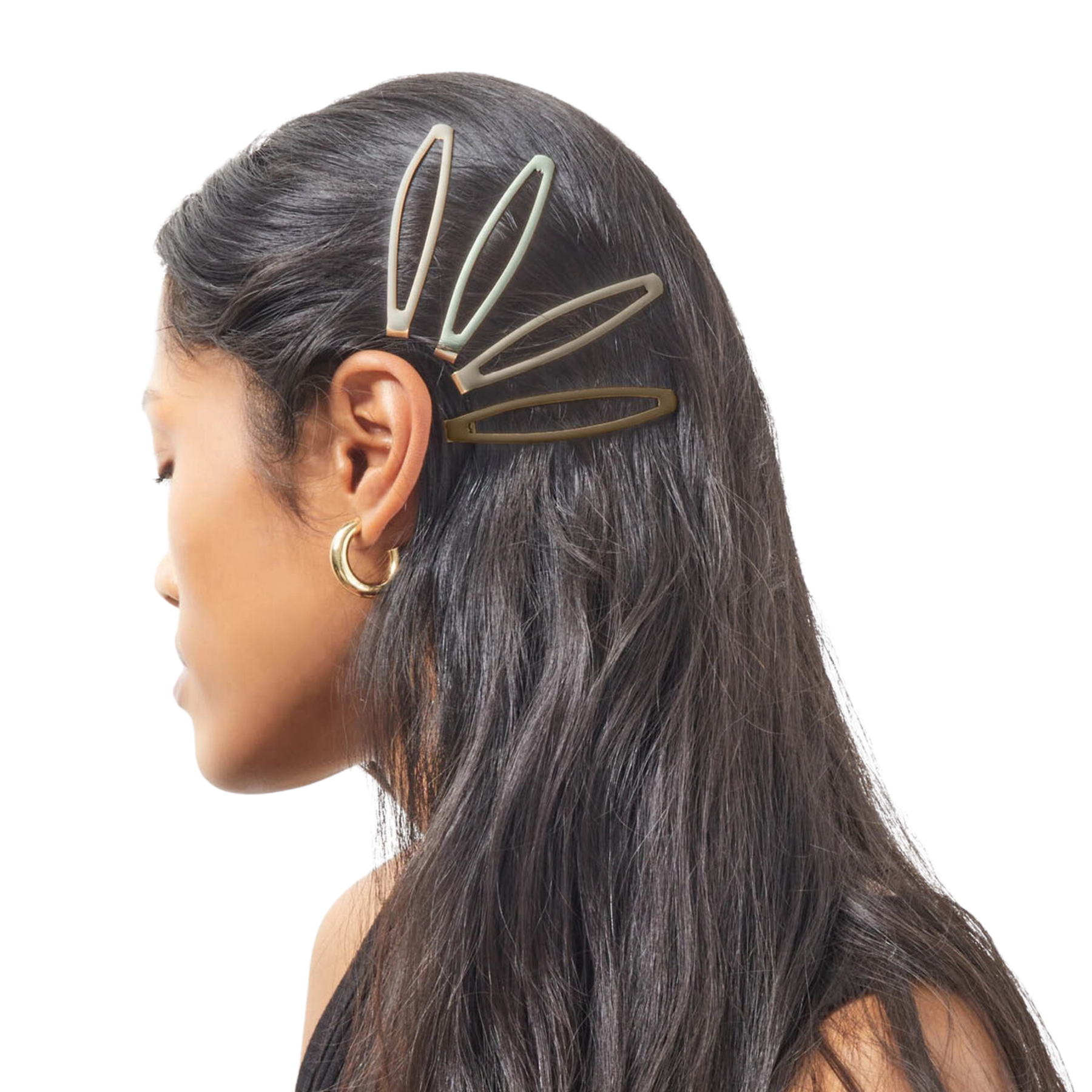 Make a statement and secure stray hairs in a snap with Kitsch Matte Snap Clips. Featuring a slightly longer shape, these accessories are great for most hair types and lengths, whether you want to keep your bangs back or add some flair to your everyday ponies and buns. These hair clips are fun, functional, and feature a matte finish for an elevated touch. Comes in a pack of 4 with an array of earthy neutrals—wear one on its own or mix and match a few to complement your outfit.