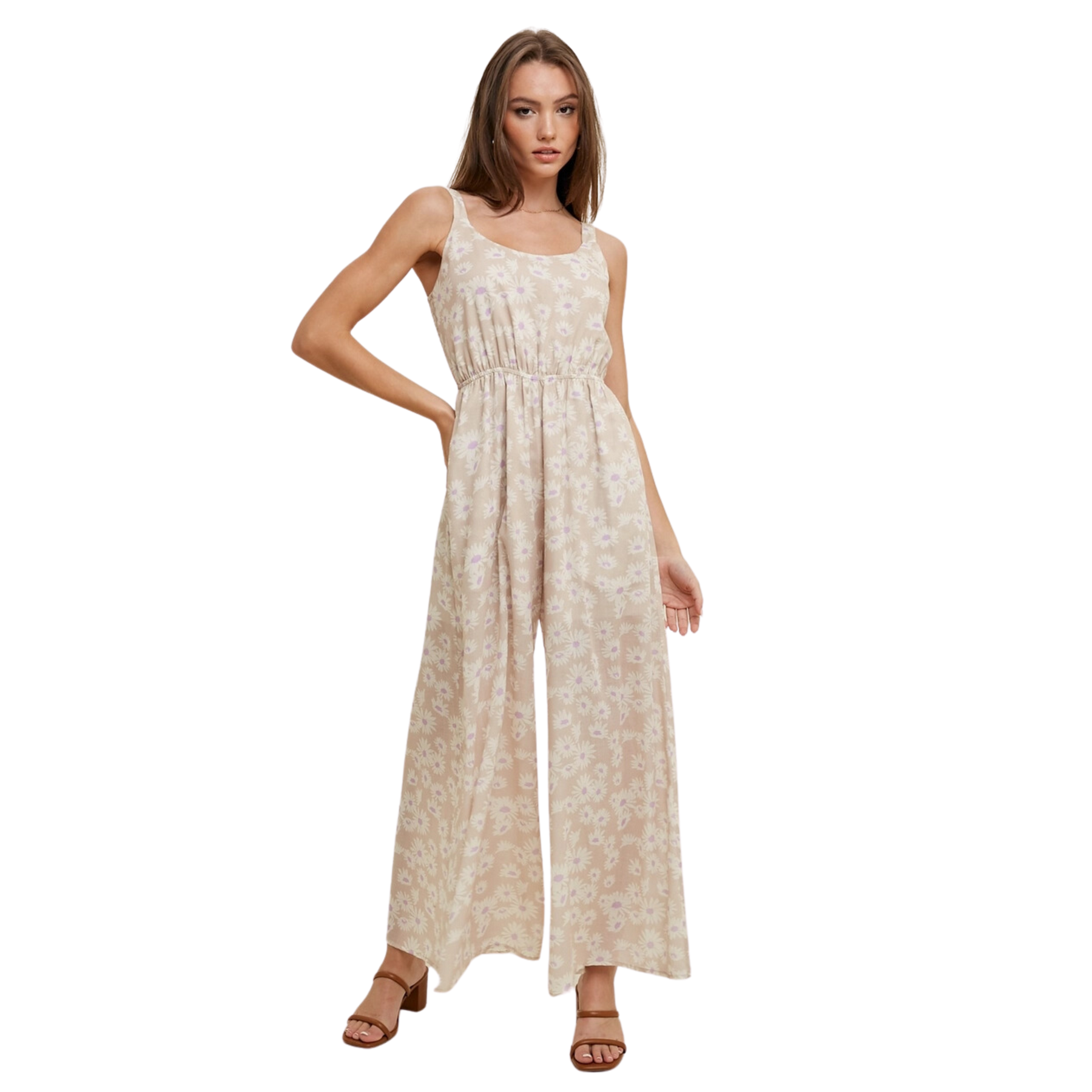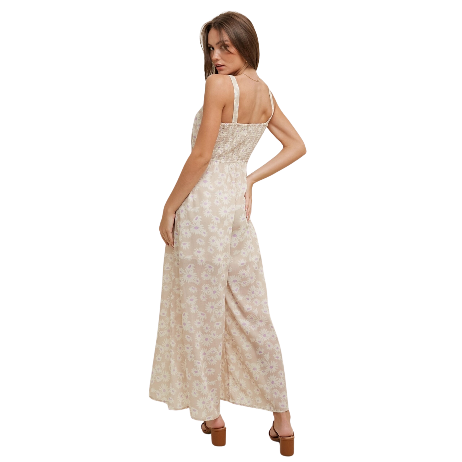 Floral Jumpsuit with smocked back detail. Lined and side pockets.