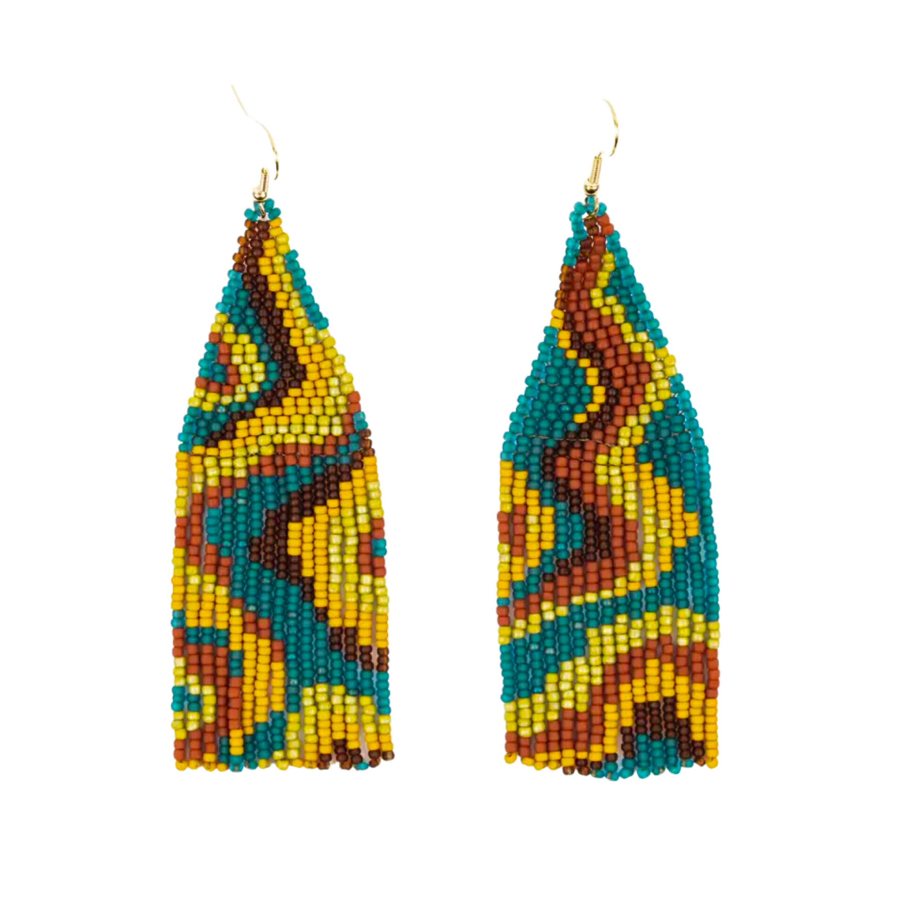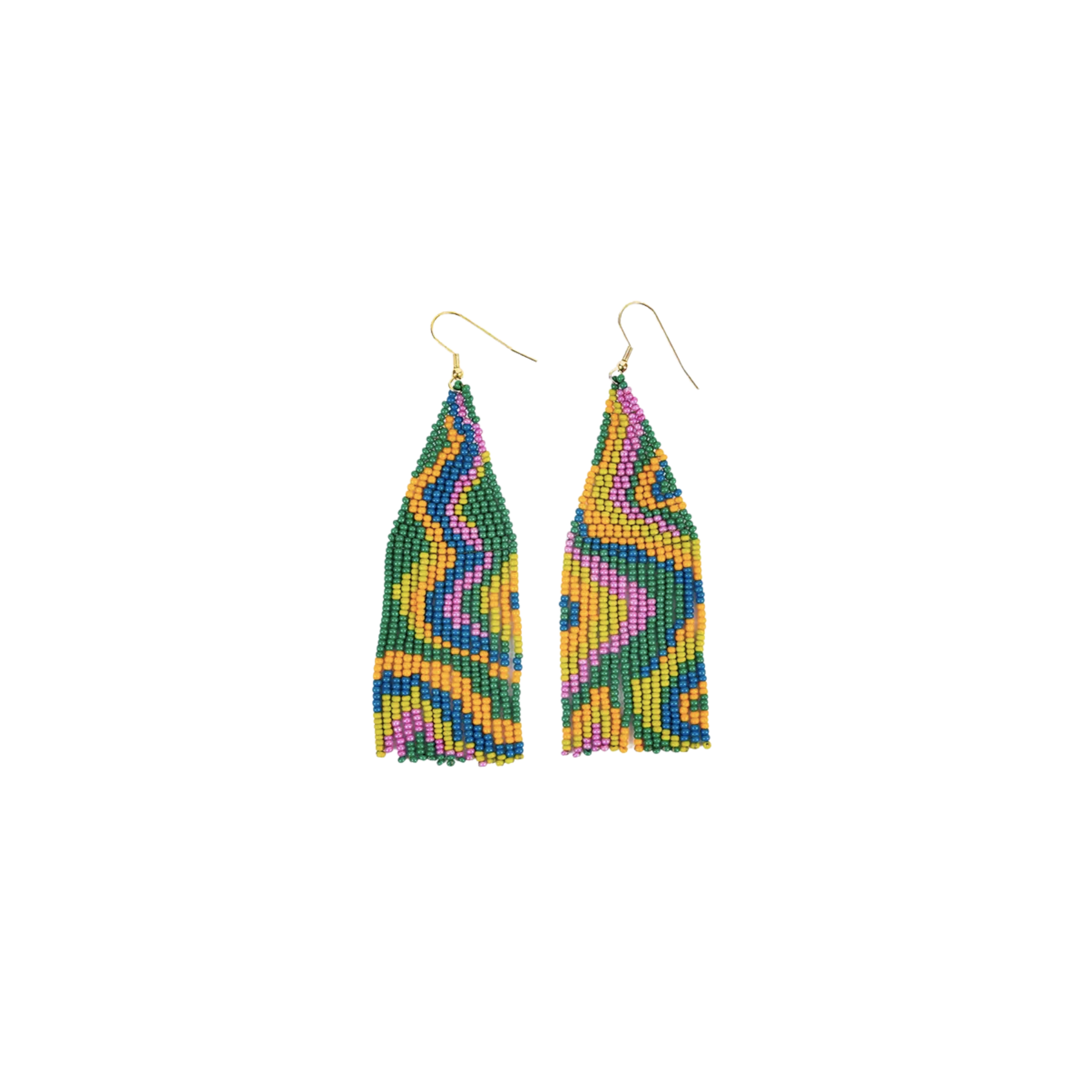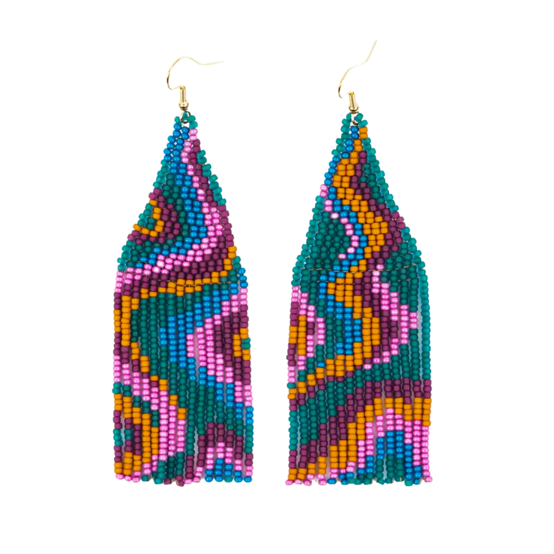 The Psychedelic Fringe Earrings are handmade in a fair trade workshop in Guatemala.