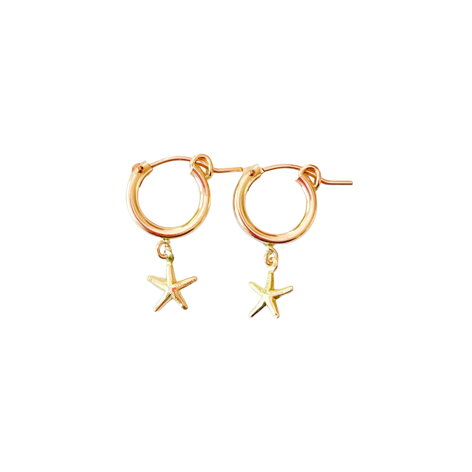 Available with your choice of one of three hanging charms: A small gold-filled heart (10mm) Tiny gold filled Starfish (6mm) A Tiny gold filled sun (6mm)