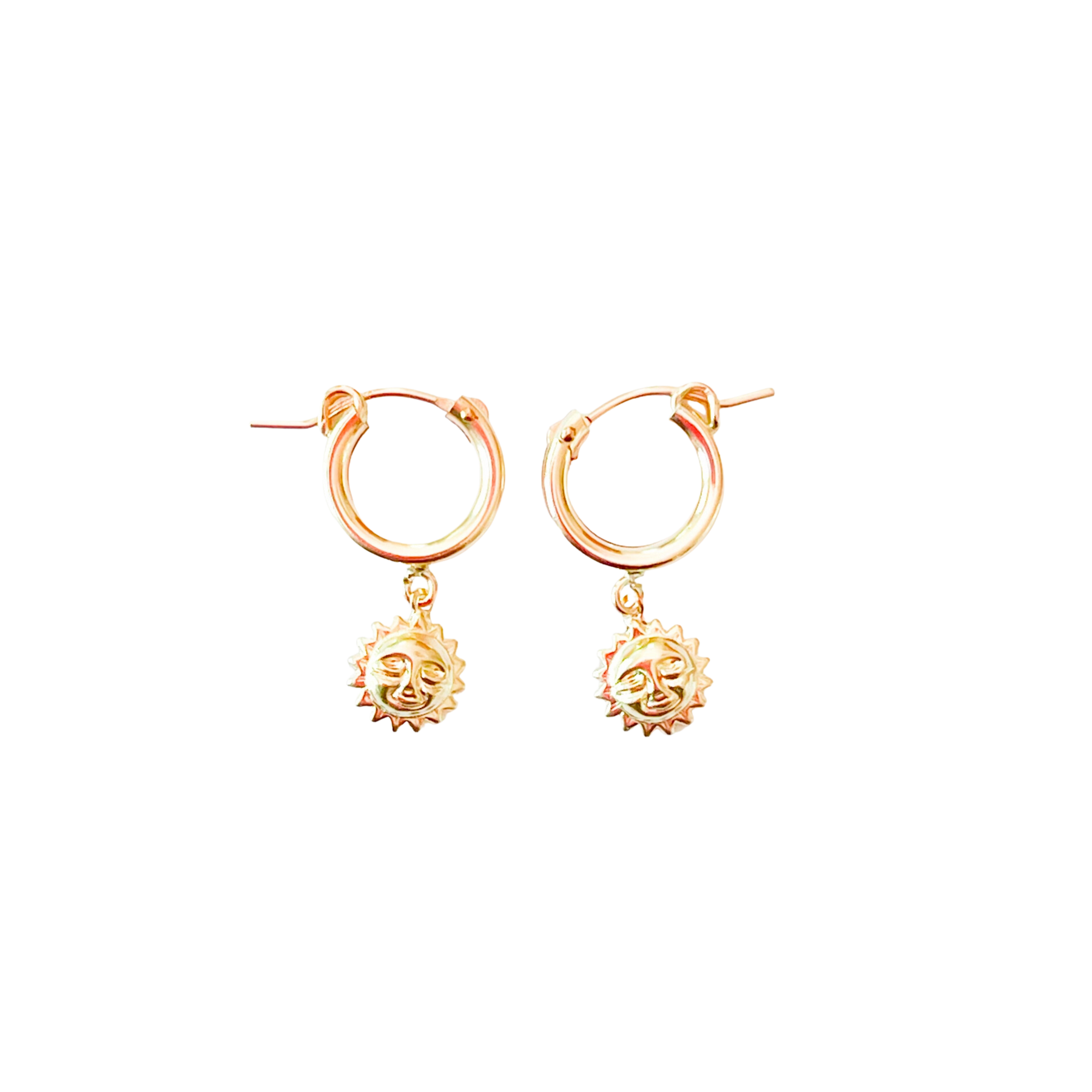 The Details: 14K Gold filled Thick 13mm hoops Gold filled charms Click back
