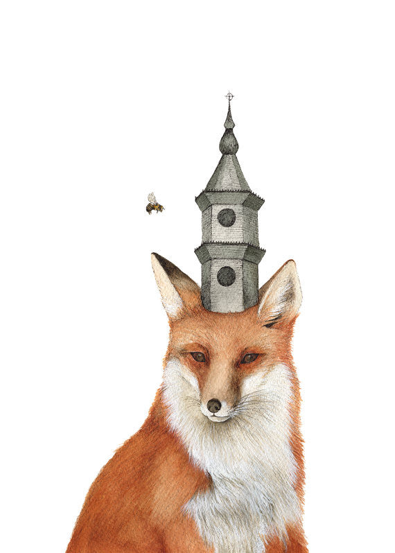 This is a quality inkjet reproduction of an original painting/drawing. The original was drawn in pen and then painted with acrylic ink and watercolor on paper.