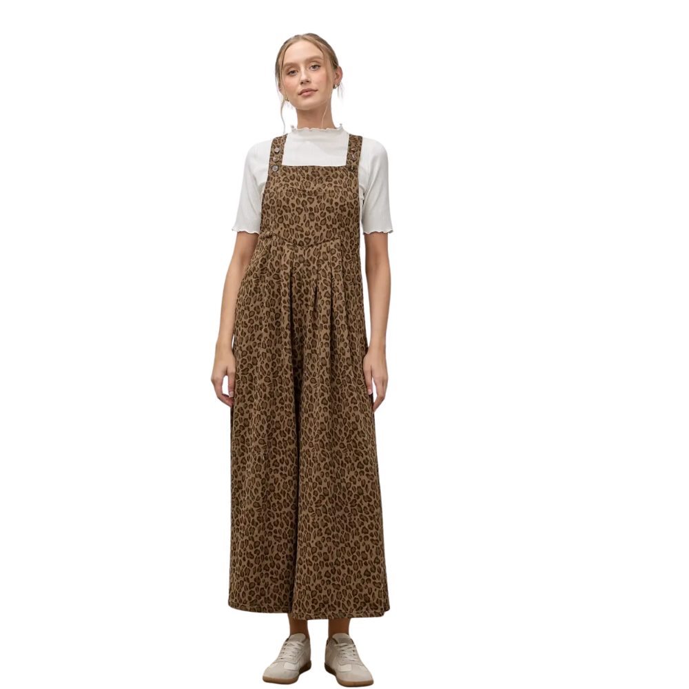 Make a subtle statement in this effortlessly cool wide-leg jumpsuit, featuring an allover leopard print that’s both playful and easy to wear. Adjustable straps let you find your perfect fit, while deep side pockets keep things casual and functional. The relaxed, flowy silhouette pairs just as well with a fitted tee as it does with a cozy sweater — a year-round favorite for layering and lounging alike.