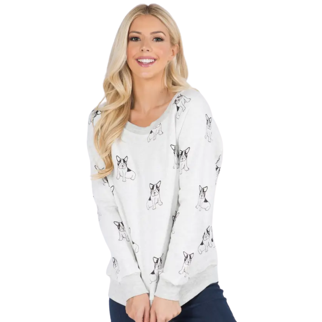 Snuggle up in this warm and cozy fleece sweatshirt featuring an adorable Frenchie print! With its classic crew neck and long sleeves, it’s the perfect mix of playful and comfy for dog lovers everywhere.
